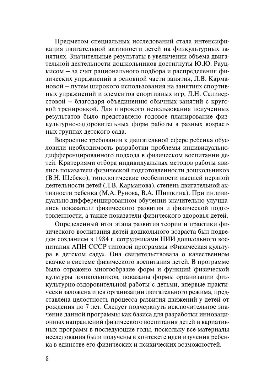 Изложены теоретические и методические основы физического воспитания детей дошкольного возраста. Раскрыты современные подходы к организации физкультурно-оздоровительной работы в дошкольном учреждении. Показаны основы формирования личности дошкольника средствами физической культуры. Для студентов вузов по специальностям "Дошкольное образование", "Дошкольное образование. Дополнительная специальность". Будет полезно магистрантам, аспирантам, преподавателям, а также педагогам дошкольных учреждений и родителям.