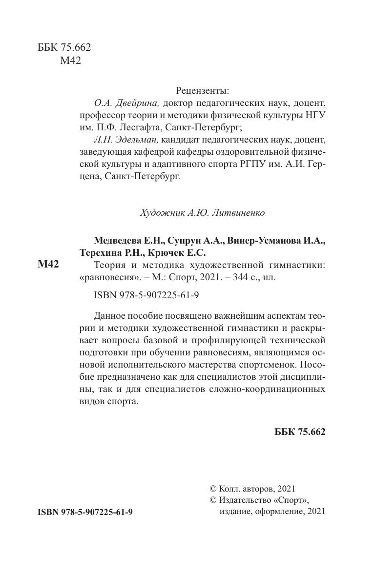 подготовки при обучении равновесиям, являющимся основой исполнительского мастерства спортсменок. Пособие предназначено как для специалистов этой дисципли-