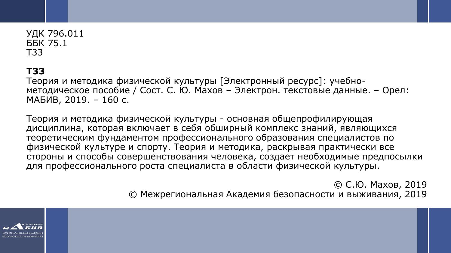 Теория и методика физической культуры