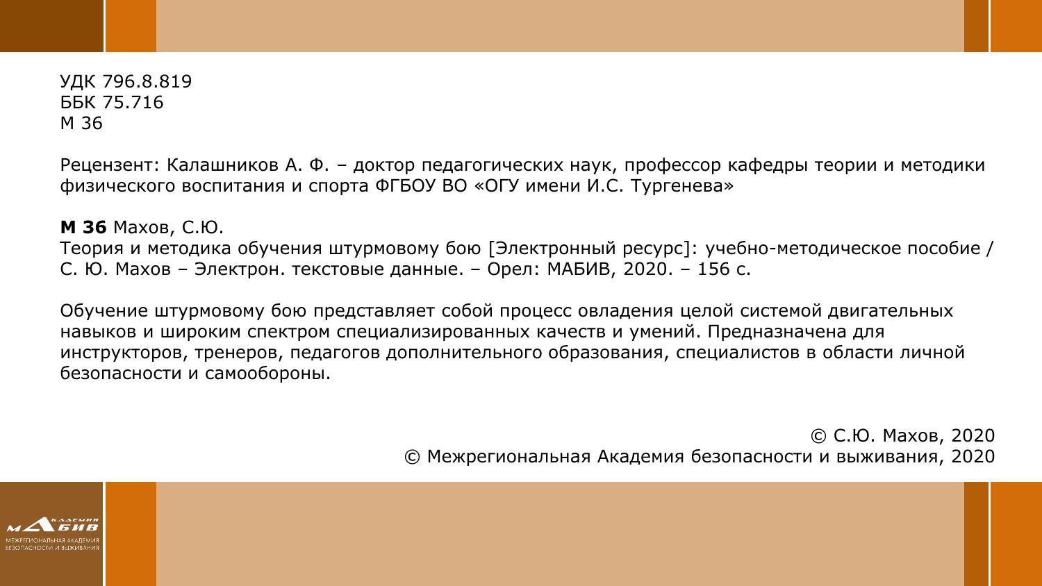 Обучение штурмовому бою представляет собой процесс овладения целой системой двигательных навыков и широким спектром специализированных качеств и умений. Предназначена для инструкторов, тренеров, педагогов дополнительного образования, специалистов в области личной безопасности и самообороны.