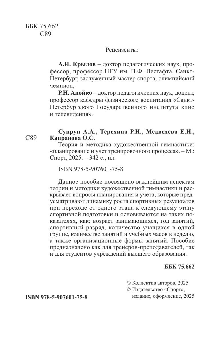 Теория и методика художественной гимнастики: «планирование и учет тренировочного процесса»