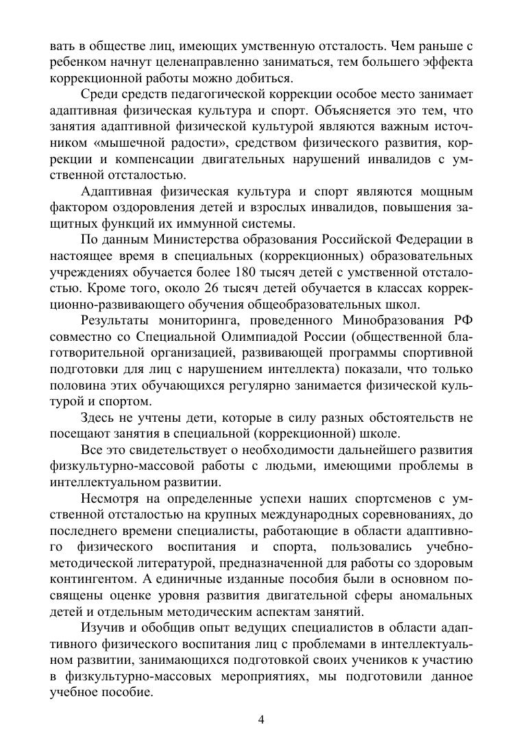 Учебник предназначен для учащихся колледжей, обучающихся по направлению подготовки «Адаптивная физическая культура», слушателей курсов повышения квалификации и переподготовки кадров институтов дополнительного образования, а также для специалистов общеобразовательных и специальных (коррекционных) образовательных учреждений, учреждений системы социальной защиты, занимающихся организацией физкультурно-оздоровительной и спортивной работой с лицами с нарушениями психического развития. Соответствует современным требованиям Федерального государственного образовательного стандарта среднего профессионального образования и профессиональным квалификационным требованиям.