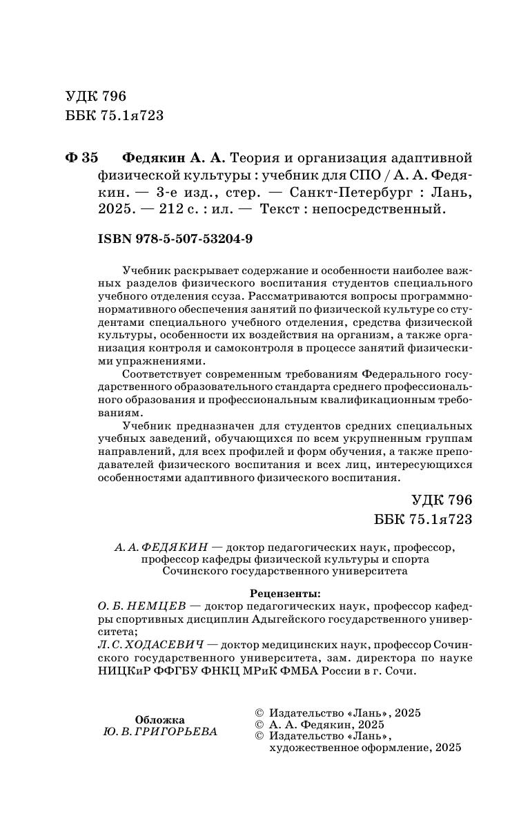 Учебник раскрывает содержание и особенности наиболее важных разделов физического воспитания студентов специального учебного отделения ссуза. Рассматриваются вопросы программно-нормативного обеспечения занятий по физической культуре со студентами специального учебного отделения, средства физической культуры, особенности их воздействия на организм, а также организация контроля и самоконтроля в процессе занятий физическими упражнениями. Соответствует современным требованиям Федерального государственного образовательного стандарта среднего профессионального образования и профессиональным квалификационным требованиям. Учебник предназначен для студентов средних специальный учебных заведений, обучающихся по всем укрупненным группам направлений, для всех профилей и форм обучения, а также преподавателей физического воспитания и всех лиц, интересующихся особенностями адаптивного физического воспитания.