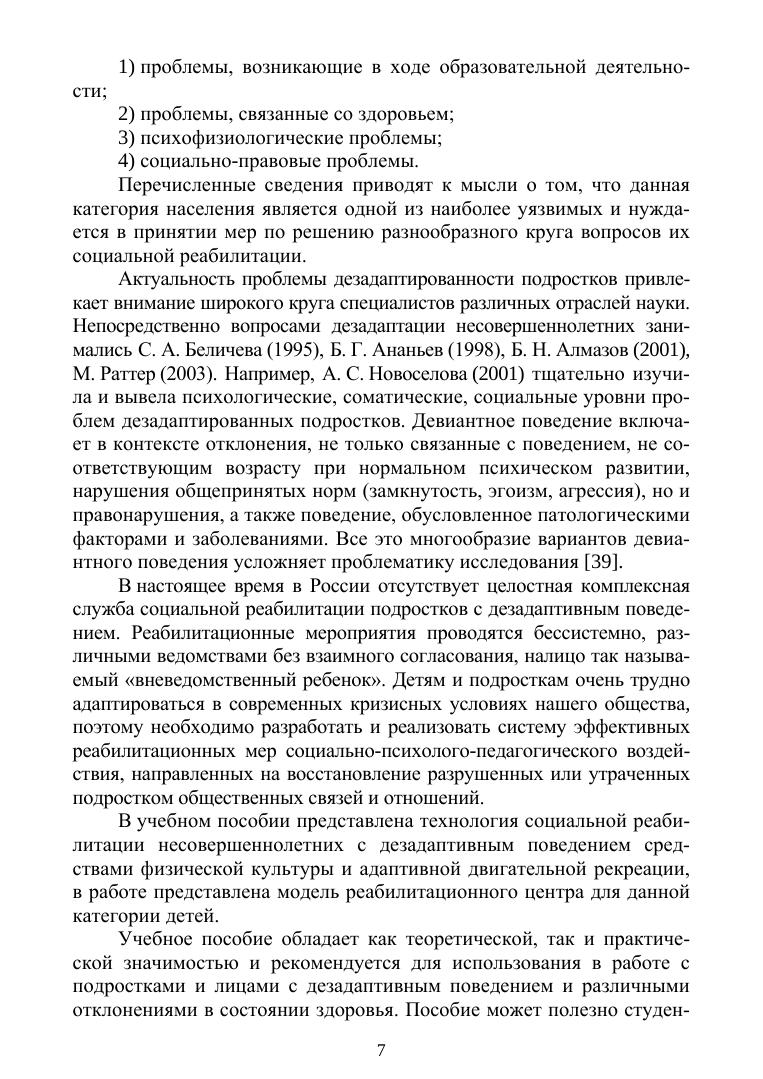 В пособии представлена технология социальной реабилитации несовершеннолетних с дезадаптивным поведением средствами физической культуры и адаптивной двигательной рекреации, предложена модель реабилитационного центра для данной категории детей. Соответствует современным требованиям Федерального государственного образовательного стандарта среднего профессионального образования и профессиональным квалификационным требованиям.
