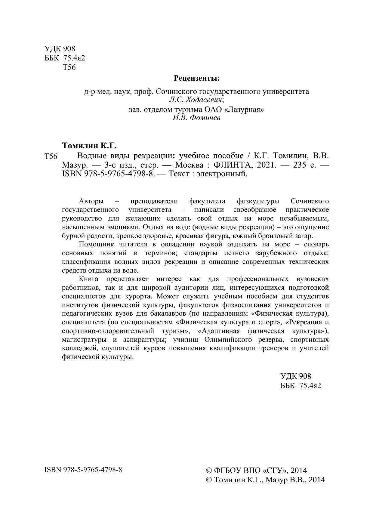 Помощник читателя в овладении наукой отдыхать на море – словарь основных понятий и терминов; стандарты летнего зарубежного отдыха; классификация водных видов рекреации и описание современных технических средств отдыха на воде.