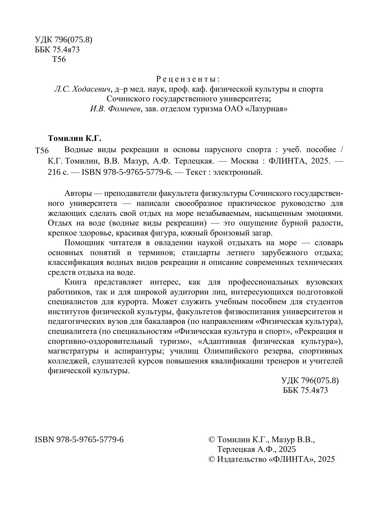Авторы — преподаватели факультета физкультуры Сочинского государственного университета — написали своеобразное практическое руководство для желающих сделать свой отдых на море незабываемым, насыщенным эмоциями. Отдых на воде (водные виды рекреации) — это ощущение бурной радости, крепкое здоровье, красивая фигура, южный бронзовый загар.