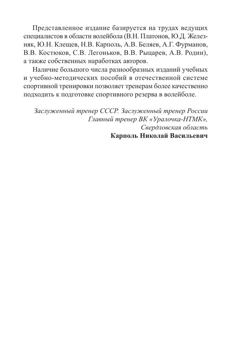 В учебном пособии рассматриваются основы подготовки волейболистов, раскрываются особенности организации тренировочного процесса, а также судейство соревнований и правила игры. В представленном издании обобщены собственные наработки авторов и ведущих специалистов в области волейбола. Теоретико-методический материал дает представление о современных направлениях успешной подготовки спортсмена к игровому процессу в волейболе, рассматриваются физические способности и методика их развития, а также раскрыта программа повышения вертикального прыжка. Особое место в учебном пособии отводится вопросам технической и тактической подготовке, их контролю, а также организации тренировочного процесса, как отдельного игрока, так и волейбольных команд. Учебное пособие может быть полезно тренерам, работающим с детско-юношескими и студенческими командами высших и средних специальных учебных заведений, а также бакалаврам, магистрантам, аспирантам, тренерам педагогам и еще целому ряду специалистов интересующихся основами рассматриваемой игры.