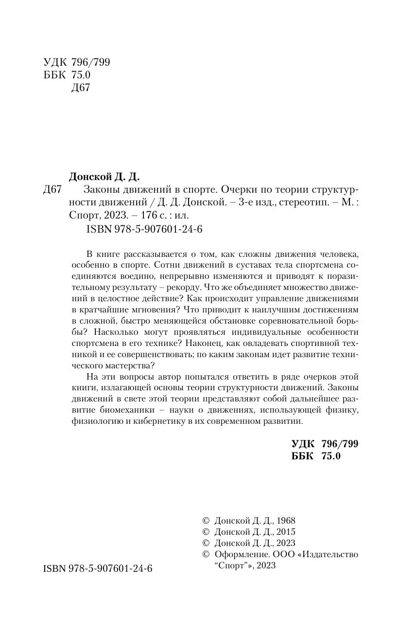 В книге рассказывается о том, как сложны движения человека, особенно в спорте. Сотни движений в суставах тела спортсмена соединяются воедино, непрерывно изменяются и приводят к поразительному результату – рекорду. Что же объединяет множество движений в целостное действие? Как происходит управление движениями в кратчайшие мгновения? Что приводит к наилучшим достижениям в сложной, быстро меняющейся обстановке соревновательной борьбы? Насколько могут проявляться индивидуальные особенности спортсмена в его технике? Наконец, как овладевать спортивной техникой и ее совершенствовать; по каким законам идет развитие технического мастерства? На эти вопросы автор попытался ответить в ряде очерков этой книги, излагающей основы теории структурности движений. Законы движений в свете этой теории представляют собой дальнейшее развитие биомеханики – науки о движениях, использующей физику, физиологию и кибернетику в их современном развитии.