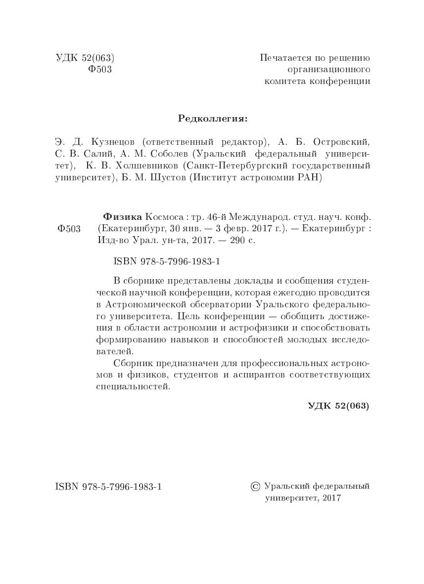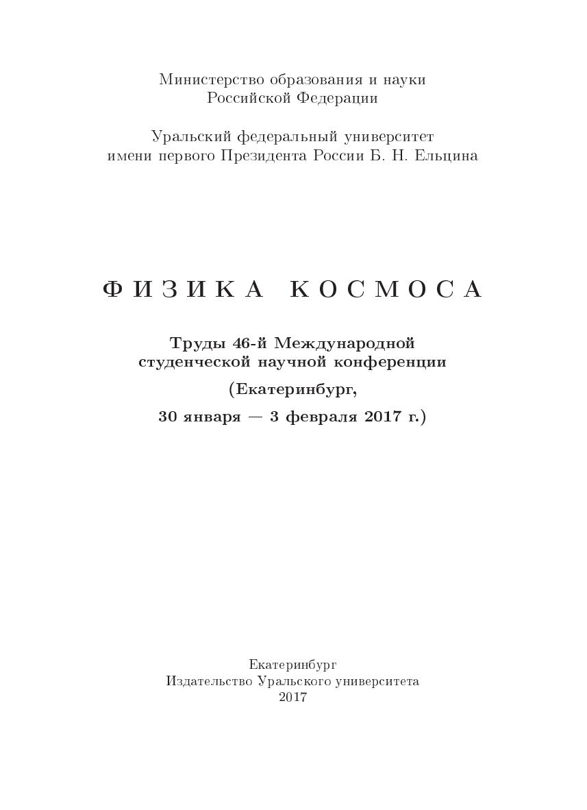 Физика Космоса: тр. 46-й Международ. студ. науч. конф. (Екатеринбург, 30 янв. - 3 февр. 2017 г.) -Екатеринбург.
