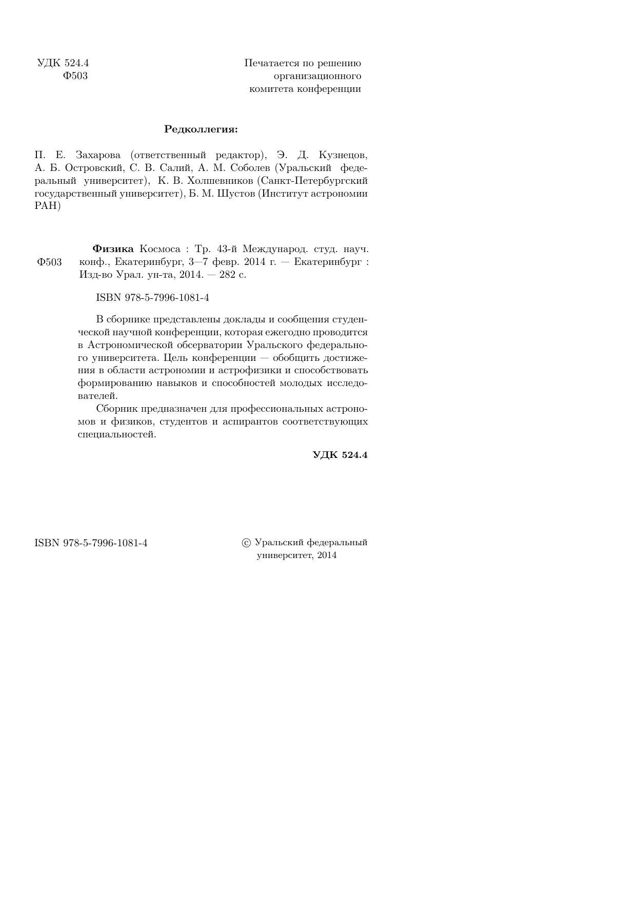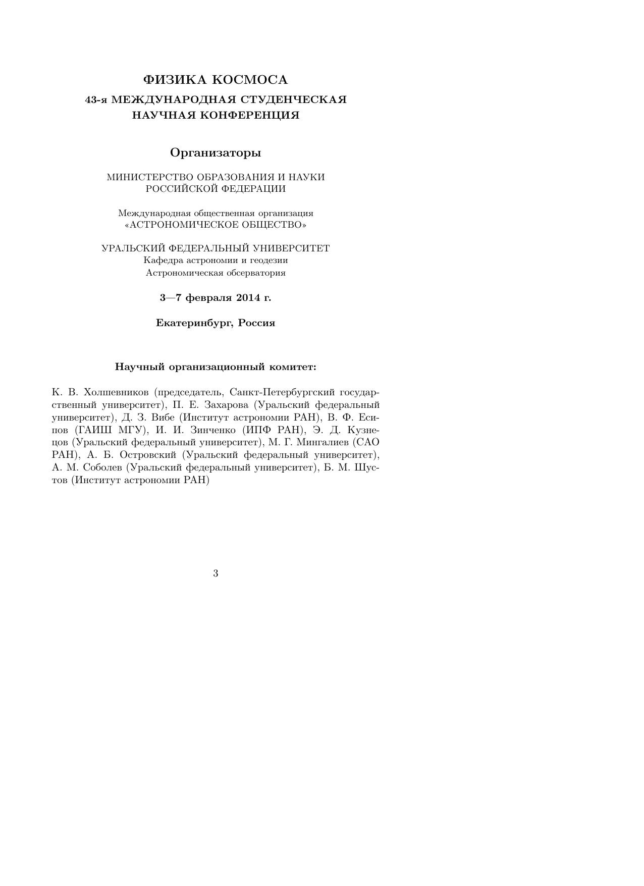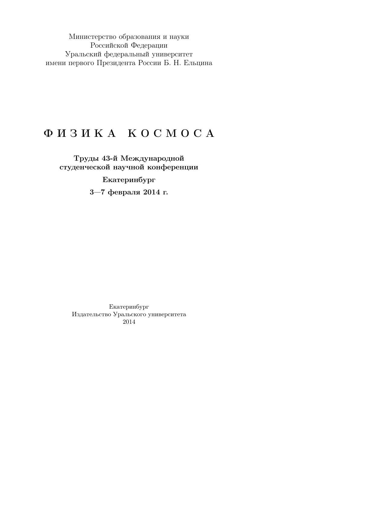 Физика Космоса : Тр. 43-й Международ. студ. науч. конф., Екатеринбург, 3—7 февр. 2014 г.