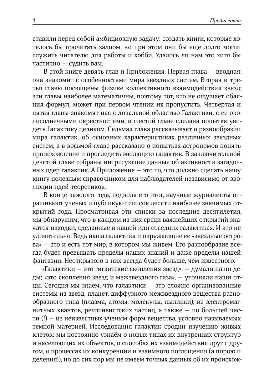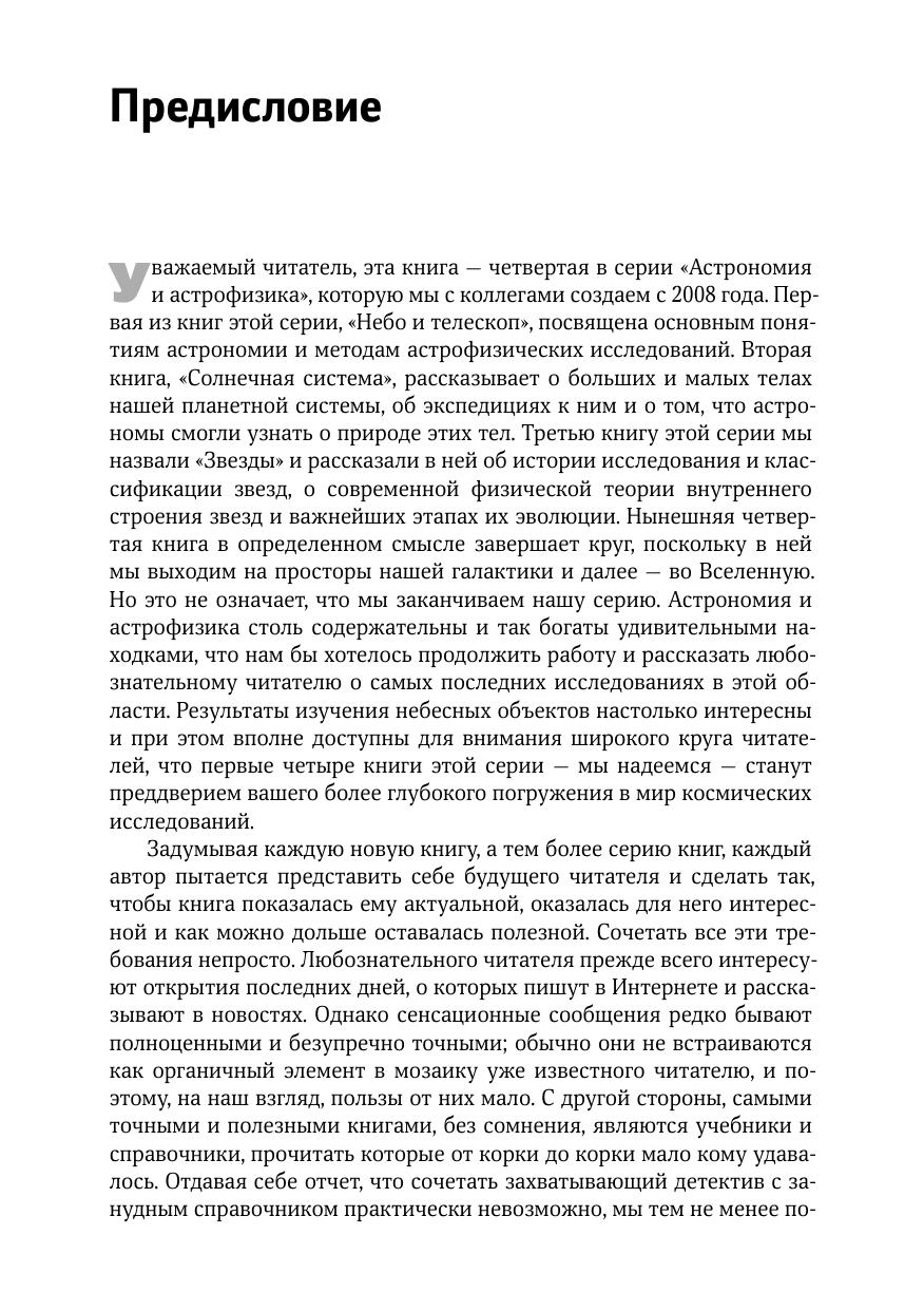 Четвертая книга из серии «Астрономия и астрофизика» содержит обзор современных представлений о гигантских звездных системах — галактиках. Рассказано об истории открытия галактик, об их основных типах и системах классификации. Даны основы динамики звездных систем. Подробно описаны ближайшие к нам галактические окрестности и работы по глобальному изучению Галактики. Приведены данные о различных типах населений галактик — звездах, межзвезд ной среде и темной материи. Описаны особенности активных галактик и квазаров, а также эволюция взглядов на происхождение галактик.