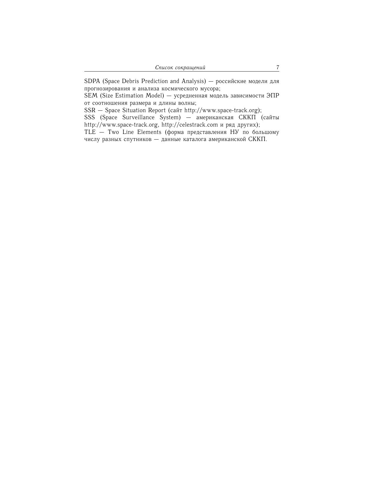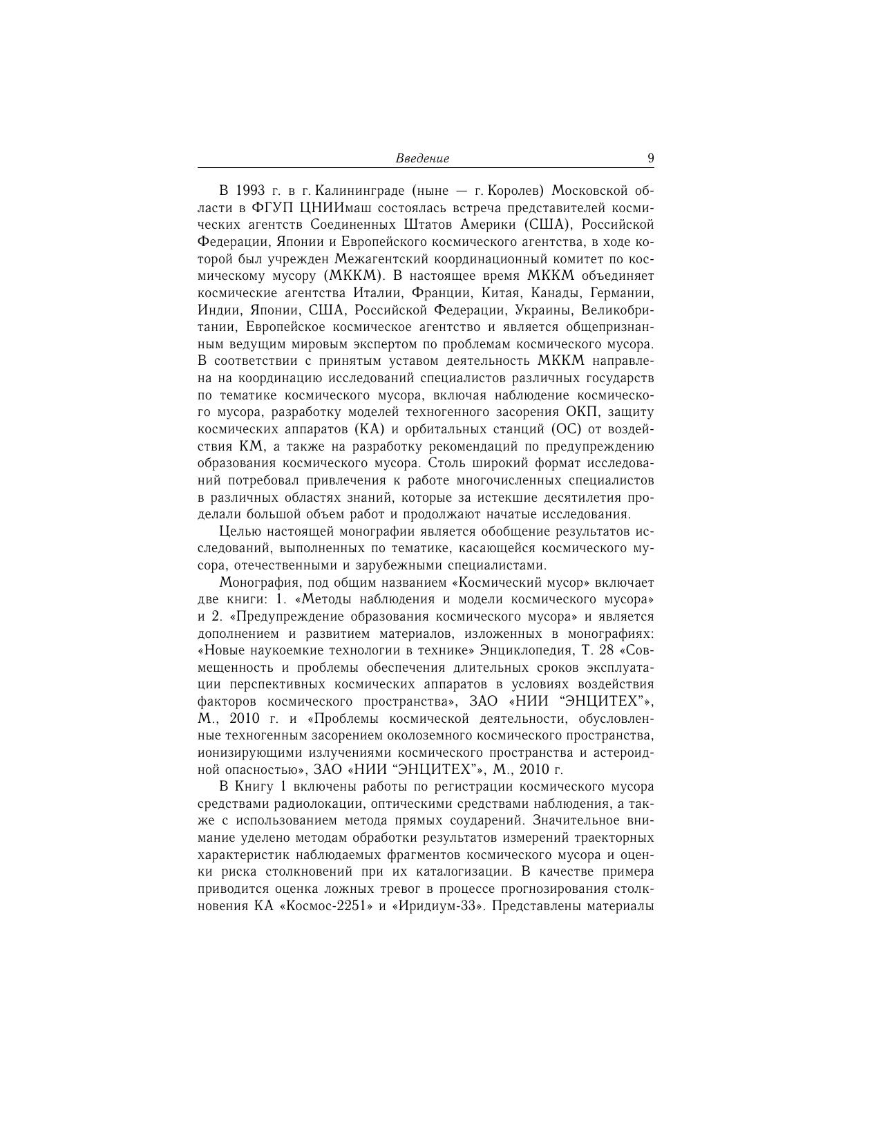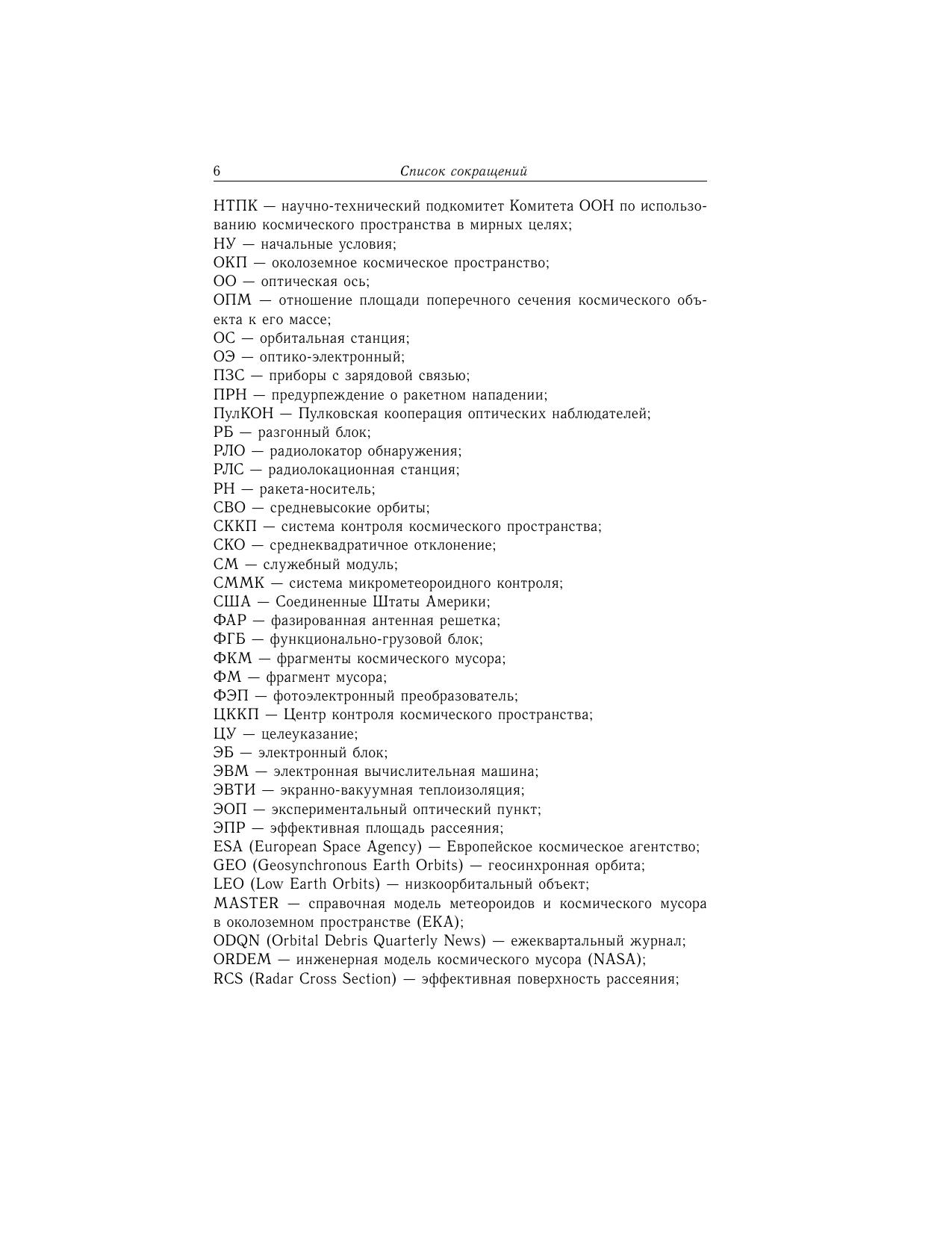В книге изложены основы методов регистрации космического мусора радиолокационными, оптическими и оптико-электронными средствами, а также с использованием метода прямых соударений. Значительное внимание уделено методам обработки результатов измерений траекторных характеристик и оценки риска столкновений наблюдаемых фрагментов космического мусора. Представлены методические основы моделирования состояния засоренности околоземного космического пространства ненаблюдаемыми фрагментами космического мусора с примерами численных расчетов. Предложена математическая модель учета влияния гравитации на потоки спорадических микрометеороидов в окрестности околоземных орбит. Для широкого круга специалистов, аспирантов, студентов и всех, кто интересуется достижениями космонавтики.