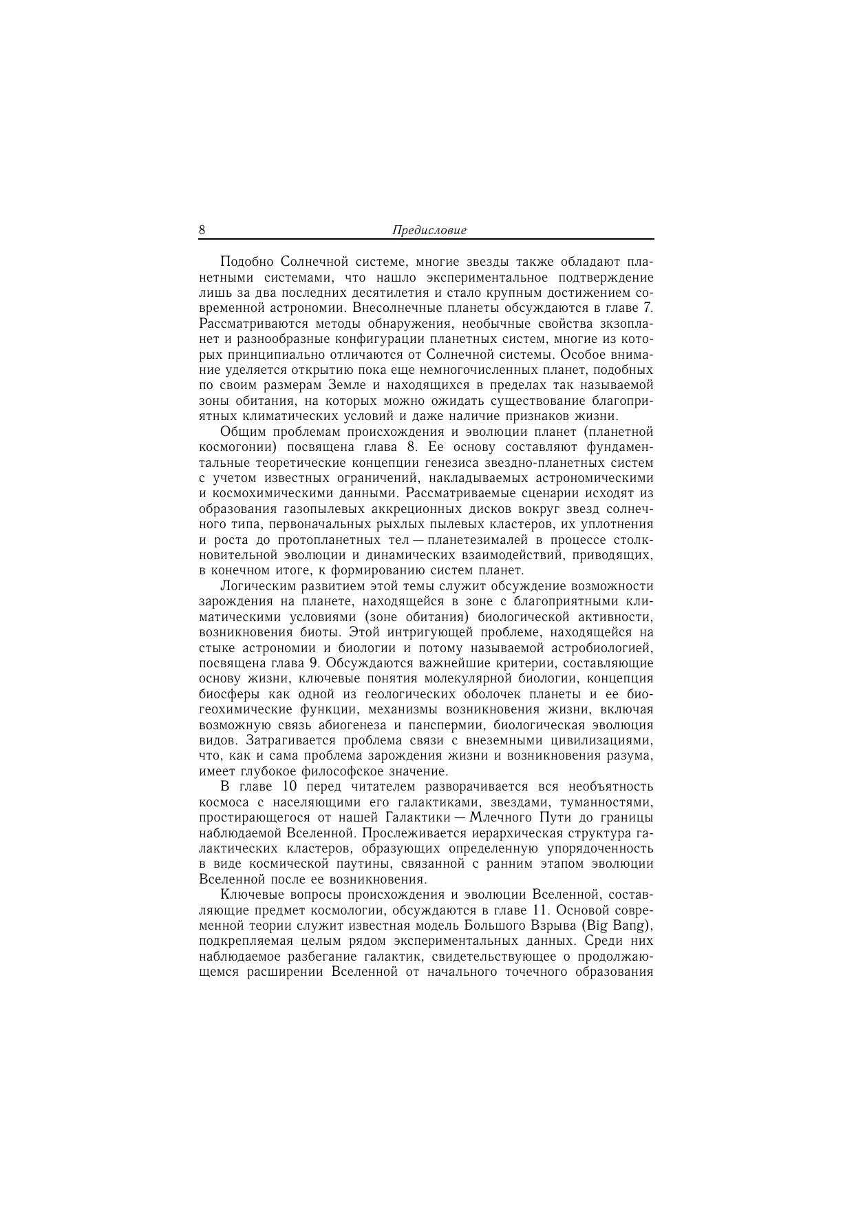 В книге в сжатой и популярной форме излагаются современные представления о космосе и населяющих его телах. Это прежде всего Солнце и Солнечная система, планеты земной группы и планеты-гиганты, малые тела (кометы, астероиды, метеороиды, межпланетная пыль). Далее рассматриваются звезды, экзопланеты, галактики и галактические кластеры, обсуждаются проблемы астробиологии и, наконец, представляется общий взгляд на нашу Вселенную. В каждом из этих разделов, наряду с обсуждением наиболее характерных физических особенностей небесных тел, особое внимание уделяется эволюционному подходу при анализе их природных свойств. В частности, вопросы происхождения Солнечной системы и планетных систем у других звезд (экзопланет) представлены в контексте общих проблем звездно-планетной эволюции (космогонии) и проблем астробиологии. Рассмотрены вопросы происхождения, эволюции и судьбы Вселенной (космологии) с позиций синергизма макро- и микрофизики, включая представления о существовании параллельных вселенных, наличии квантовых осцилляций и гипотетических топологических особенностей пространства-времени (кротовых нор). Книга, сочетающая строгость и одновременно доступность изложения, представит интерес как для преподавателей, студентов и школьников, так и для широкого круга читателей, интересующихся современными проблемами астрофизики и изучения космоса.