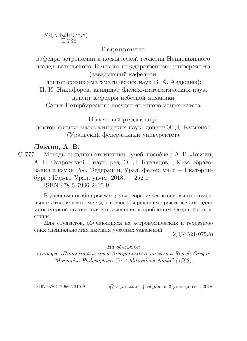 В учебном пособии рассмотрены теоретические основы многомерных статистических методов и способы решения практических задачмногомерной статистики в применении к проблемам звездной статистики.