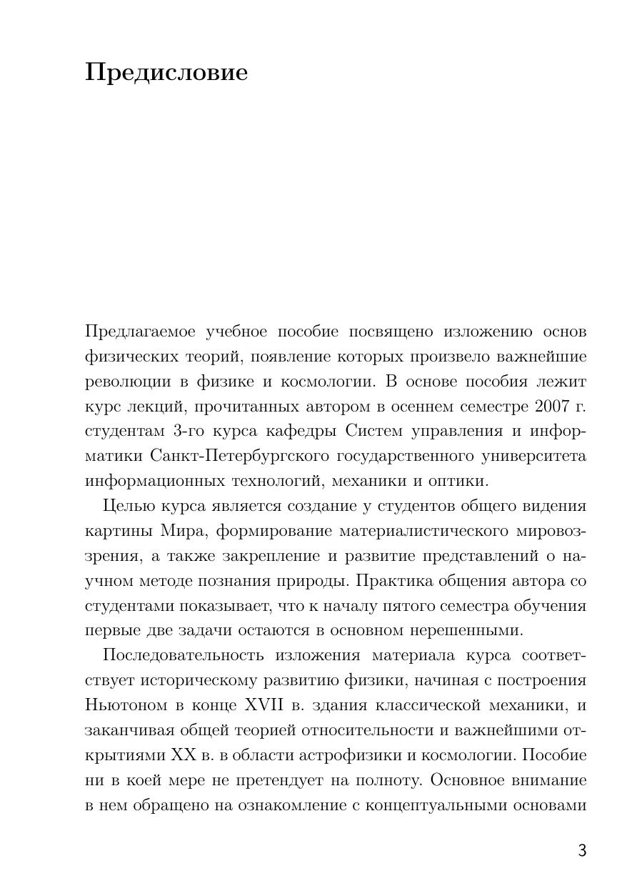В пособии излагаются концептуальные основы и элементы математического аппарата классической механики, электродинамики, специальной и общей теорий относительности, с появлением которых связаны научные революции в физике и космологии. Учебное пособие предназначено для студентов высших учебных заведений, обучающихся по направлению подготовки специалистов 220201 и по направлениям подготовкиинженеров 160402,230101,090103.Материал пособия также может быть рекомендован студентам старших курсов физико-технических специальностей.
