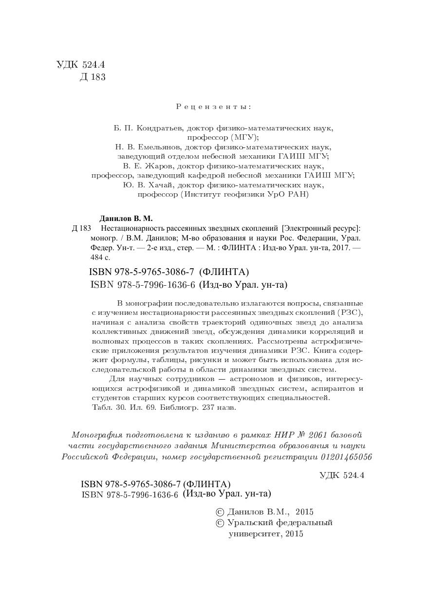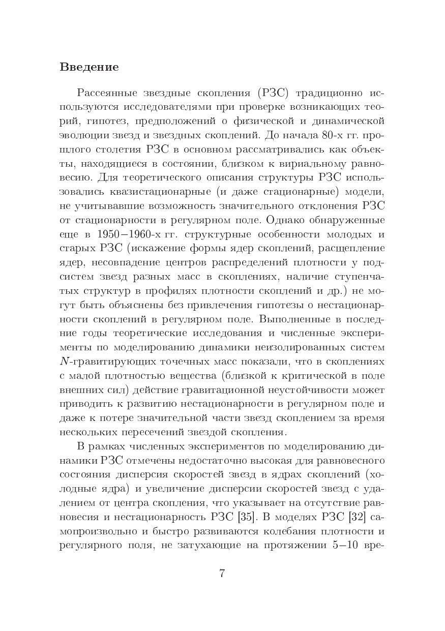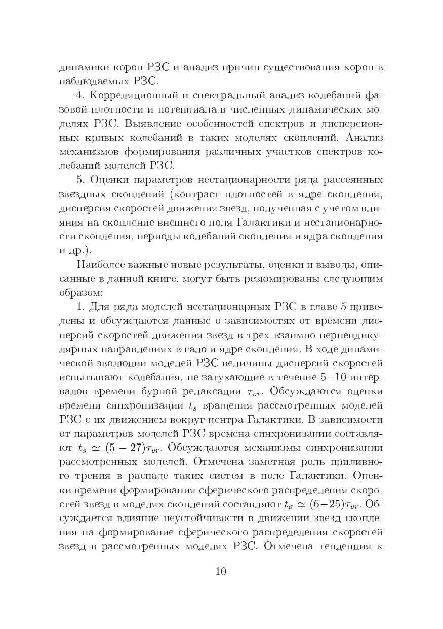 В монографии последовательно излагаются вопросы, связанные с изучением нестационарности рассеянных звездных скоплений (РЗС), начиная с анализа свойств траекторий одиночных звезд до анализа коллективных движений звезд, обсуждения динамики корреляций и волновых процессов в таких скоплениях. Рассмотрены астрофизические приложения результатов изучения динамики РЗС. Книга содержит формулы, таблицы, рисунки и может быть использована для исследовательской работы в области динамики звездных систем.