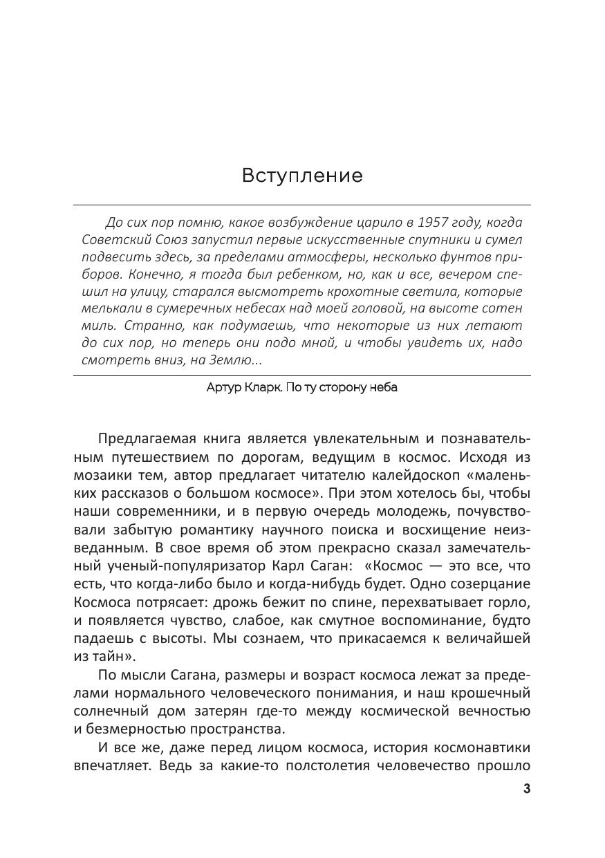 В книге рассказывается о малоизвестных страницах покорения космоса. Приводится антология таинственных случаев в истории космонавтики. Обсуждаются интересные научные гипотезы и факты. Рассматриваются мифы и легенды, возникшие вокруг космических экспедиций. Обсуждаются перспективы дальнейшего освоения Солнечной системы и полетов к звездам.