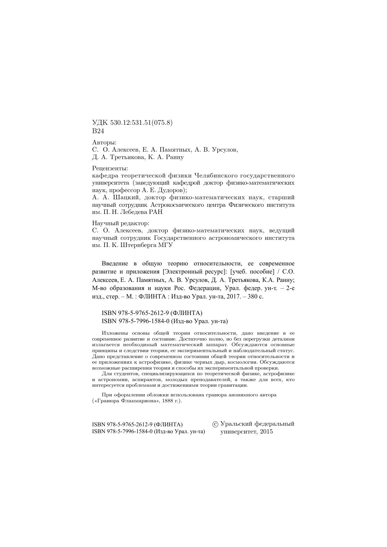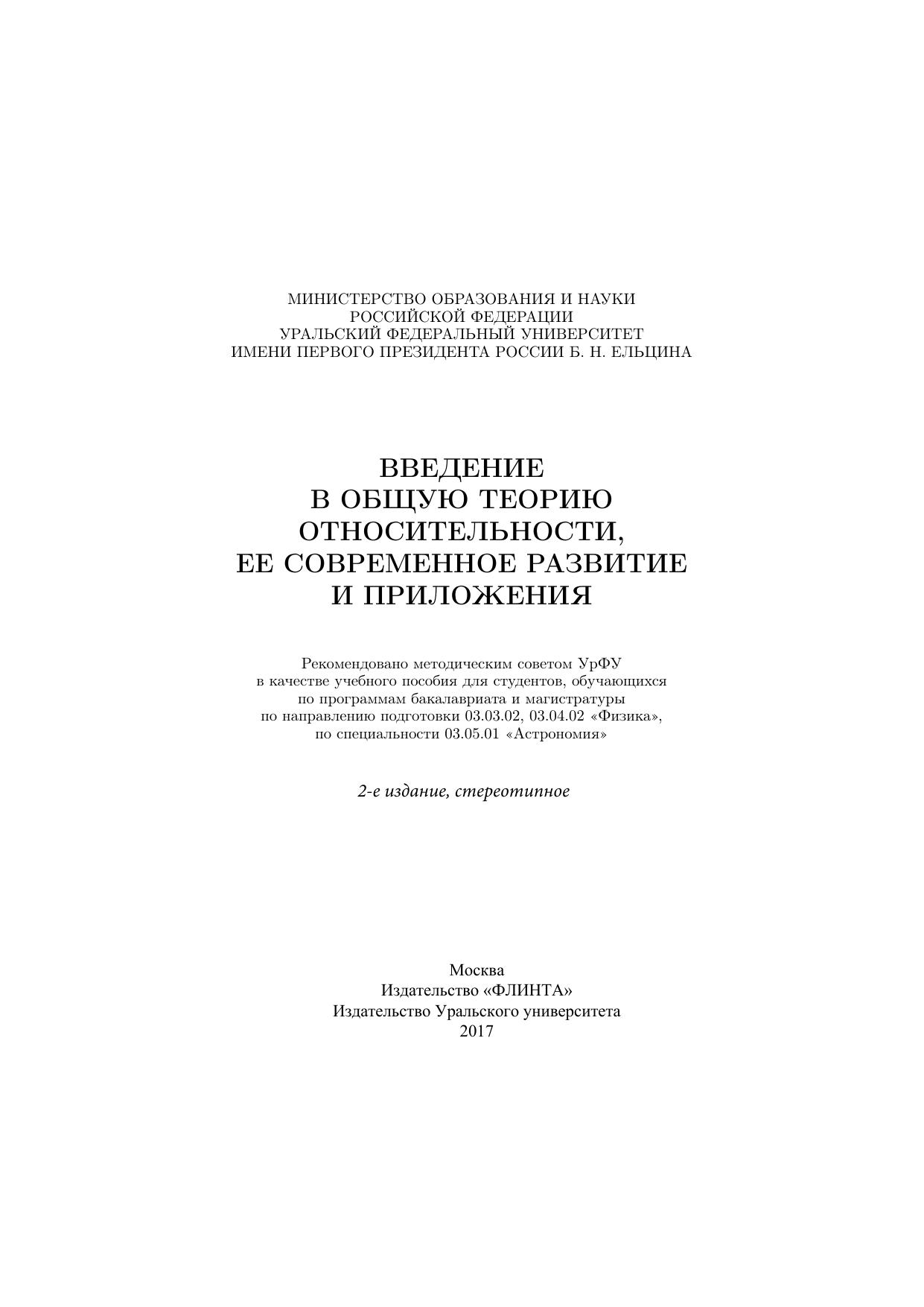 Введение в общую теорию относительности, ее современное развитие и приложения