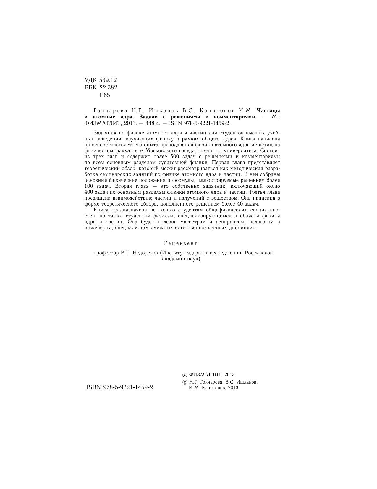 Задачник по физике атомного ядра и частиц для студентов высших учебных заведений, изучающих физику в рамках общего курса. Книга написана на основе многолетнего опыта преподавания физики атомного ядра и частиц на физическом факультете Московского государственного университета. Состоит из трех глав и содержит более 500 задач с решениями и комментариями по всем основным разделам субатомной физики. Первая глава представляет теоретический обзор, который может рассматриваться как методическая разработка семинарских занятий по физике атомного ядра и частиц. В ней собраны основные физические положения и формулы, иллюстрируемые решением более 100 задач. Вторая глава — это собственно задачник, включающий около 400 задач по основным разделам физики атомного ядра и частиц. Третья глава посвящена взаимодействию частиц и излучений с веществом. Она написана в форме теоретического обзора, дополненного решением более 40 задач. Книга предназначена не только студентам общефизических специальностей, но также студентам-физикам, специализирующимся в области физики ядра и частиц. Она будет полезна магистрам и аспирантам, педагогам и инженерам, специалистам смежных естественно-научных дисциплин.