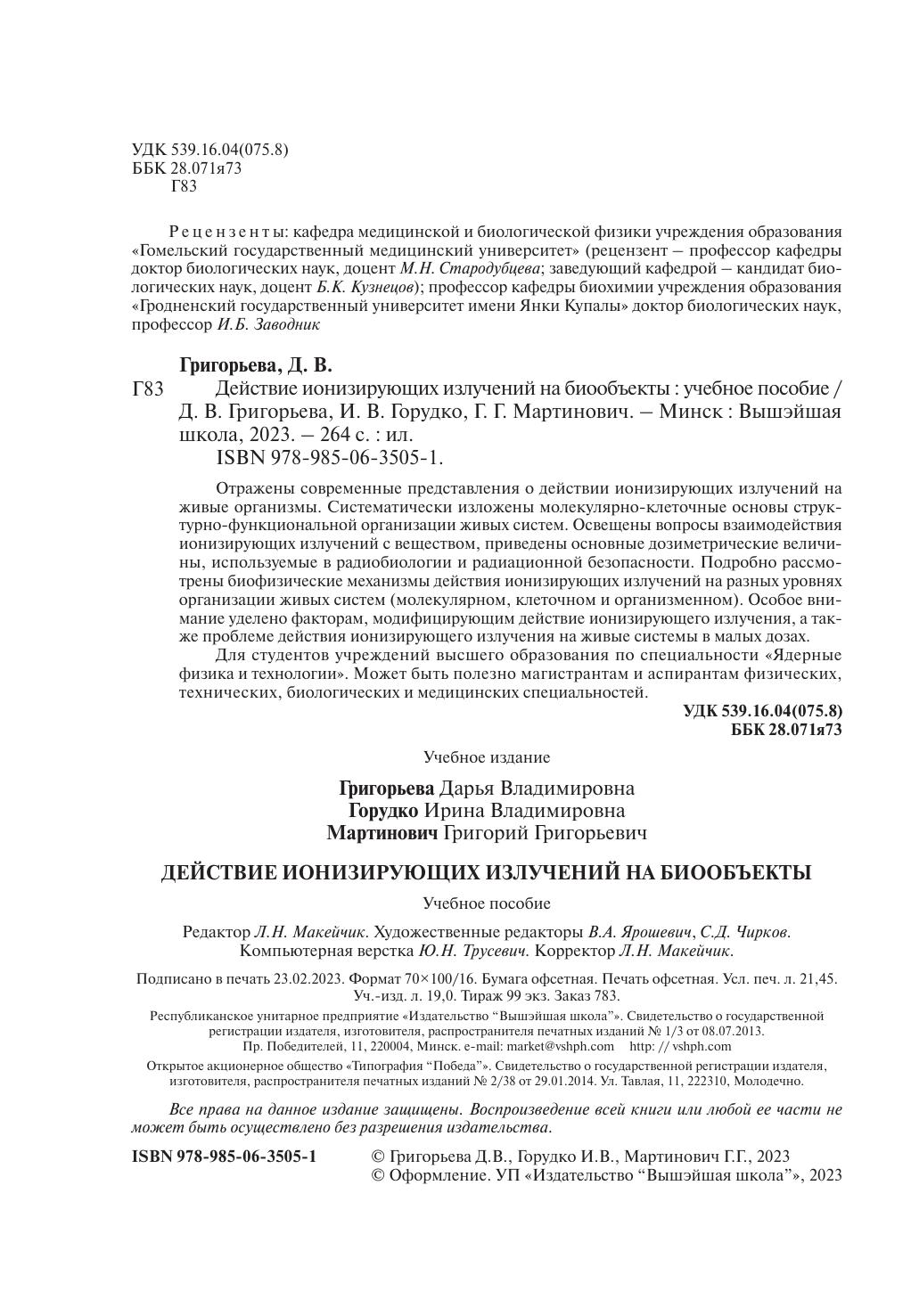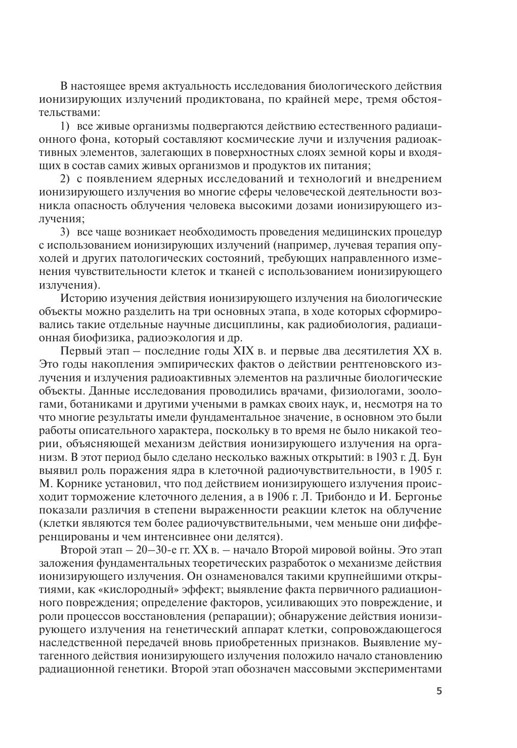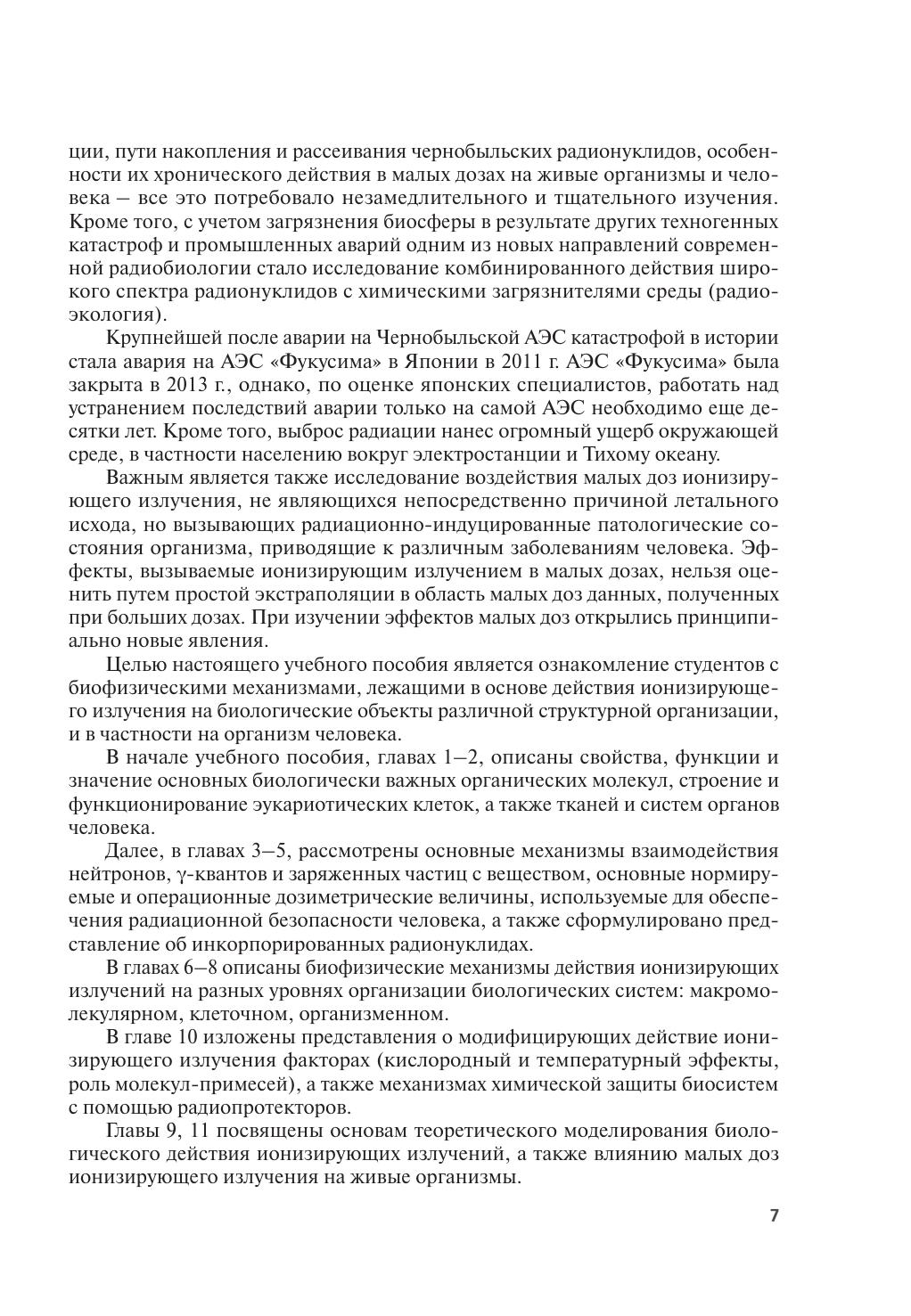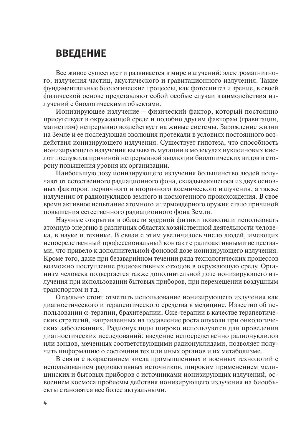 Отражены современные представления о действии ионизирующих излучений на живые организмы. Систематически изложены молекулярно-клеточные основы структурно-функциональной организации живых систем. Освещены вопросы взаимодействия ионизирующих излучений с веществом, приведены основные дозиметрические величины, используемые в радиобиологии и радиационной безопасности. Подробно рассмотрены биофизические механизмы действия ионизирующих излучений на разных уровнях организации живых систем (молекулярном, клеточном и организменном). Особое внимание уделено факторам, модифицирующим действие ионизирующего излучения, а также проблеме действия ионизирующего излучения на живые системы в малых дозах. Для студентов учреждений высшего образования по специальности «Ядерные физика и технологии». Может быть полезно магистрантам и аспирантам физических, технических, биологических и медицинских специальностей.