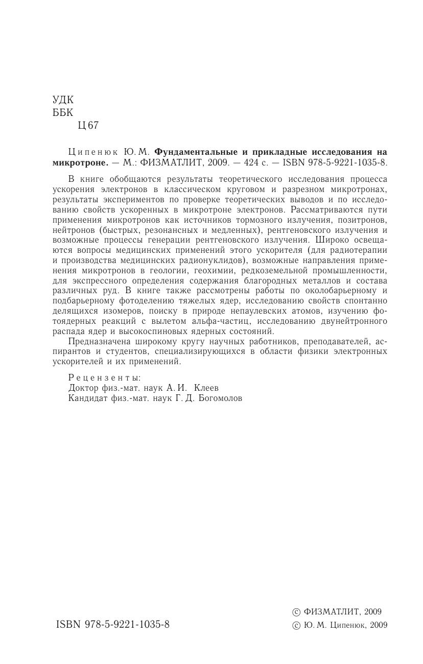 В книге обобщаются результаты теоретического исследования процесса ускорения электронов в классическом круговом и разрезном микротронах, результаты экспериментов по проверке теоретических выводов и по исследованию свойств ускоренных в микротроне электронов. Рассматриваются пути применения микротронов как источников тормозного излучения, позитронов, нейтронов (быстрых, резонансных и медленных), рентгеновского излучения и возможные процессы генерации рентгеновского излучения. Широко освещаются вопросы медицинских применений этого ускорителя (для радиотерапии и производства медицинских радионуклидов), возможные направления применения микротронов в геологии, геохимии, редкоземельной промышленности, для экспрессного определения содержания благородных металлов и состава различных руд. В книге также рассмотрены работы по околобарьерному и подбарьерномуфото делению тяжелых ядер, исследованию свойств спонтанно делящихся изомеров, поискув природе непаулевских атомов, изучению фотоядерных реакций с вылетом альфа-частиц, исследованию двунейтронного распада ядер и высокоспиновых ядерных состояний.Предназначена широкому кругу научных работников, преподавателей, аспирантов и студентов, специализирующихся в области физики электронных ускорителей и их применений.