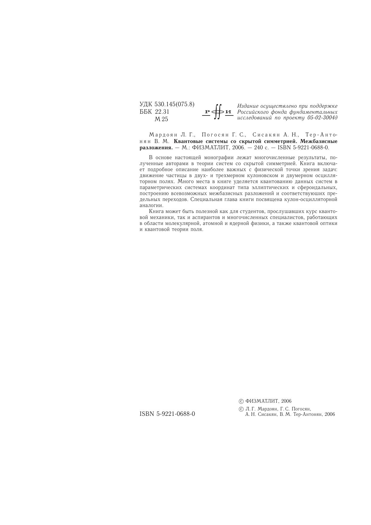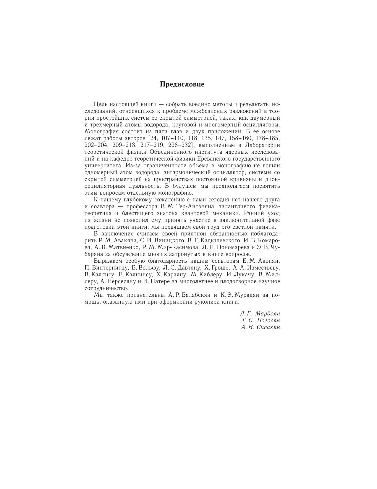 В основе настоящей монографии лежат многочисленные результаты, полученные авторами в теории систем со скрытой симметрией. Книга включает подробное описание наиболее важных с физической точки зрения задач: движение частицы в двух- и трехмерном кулоновском и двумерном осцилляторном полях. Много места в книге уделяется квантованию данных систем в параметрических системах координат типа эллиптических и сфероидальных, построению всевозможных межбазисных разложений и соответствуюших предельных переходов. Специальная глава книги посвящена кулон-осцилляторной аналогии. Книга может быть полезной как для студентов, прослушавших курс квантовой механики, так и аспирантов и многочисленных специалистов, работающих в области молекулярной, атомной и ядерной физики, а также квантовой оптики и квантовой теории поля.