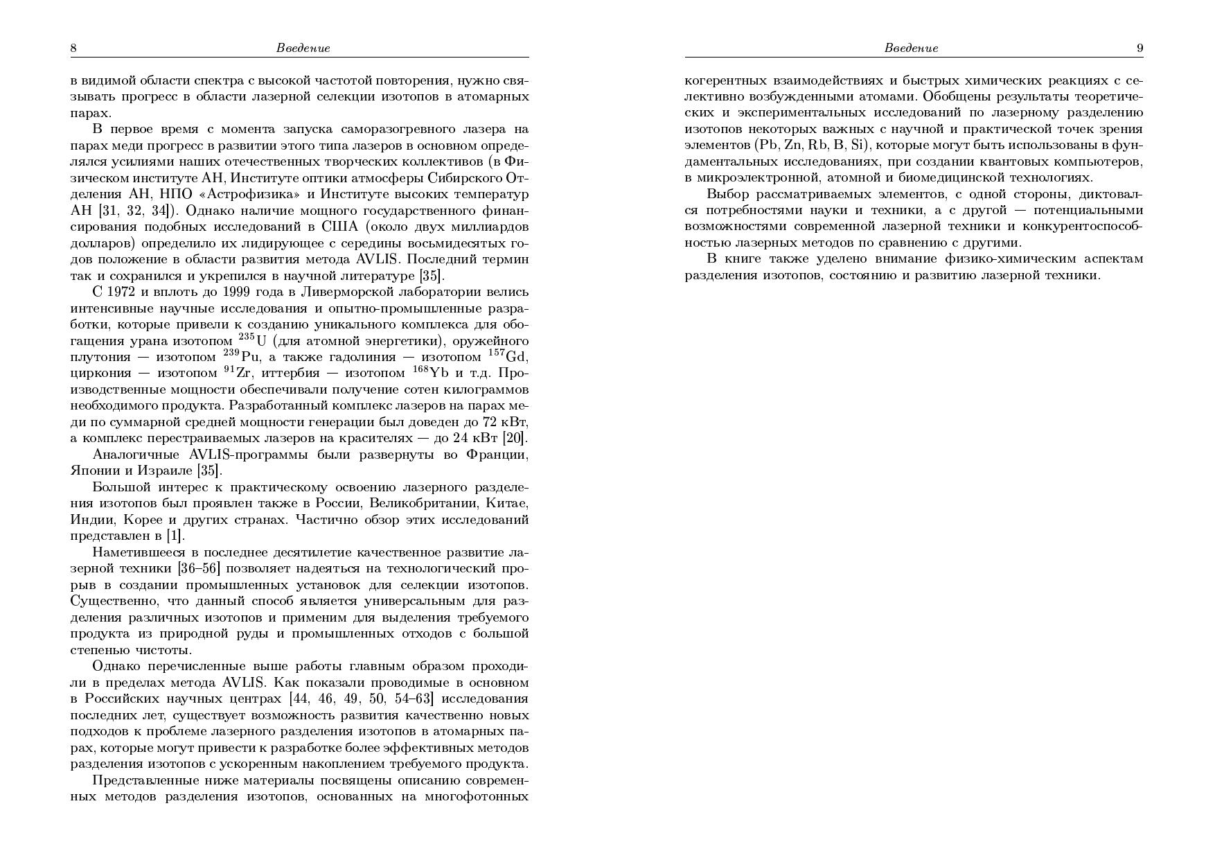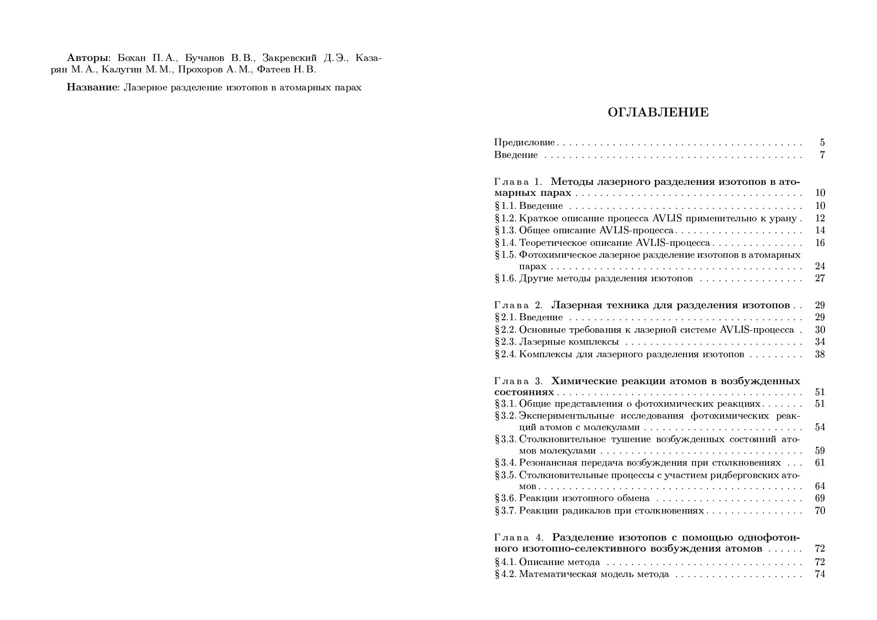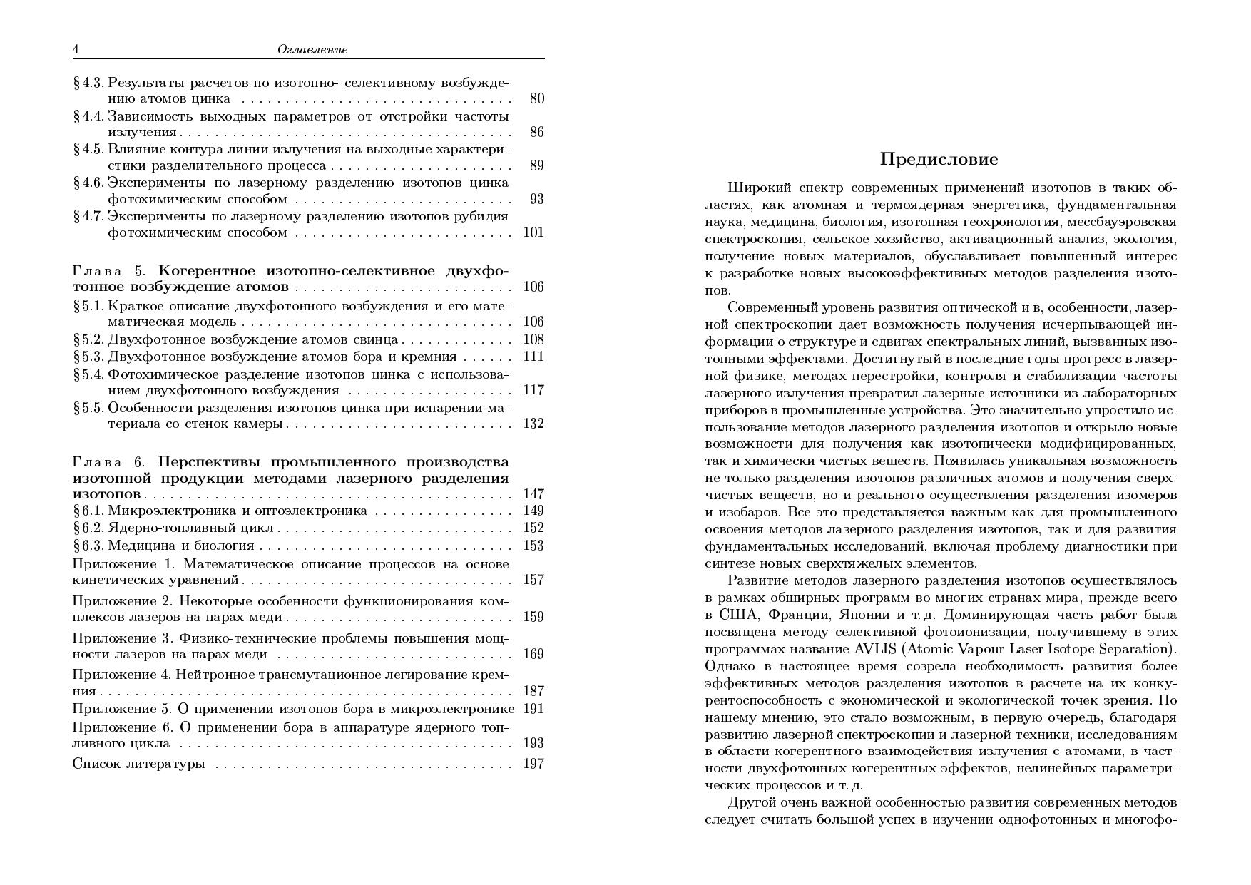 Описаны различные подходы к проблеме лазерного разделения изотопов в атомарных парах. Приведены результаты исследований фотоионизационного и фотохимического методов на основе когерентного изотопно-селективного двухфотонного возбуждения атомов как в коллинеарных, так и встречных пучках излучения. Проведено детальное компьютерное моделирование подобных процессов. Предложен метод получения изотопически измененных продуктов с использованием реакций селективно-возбужденных атомов в долгоживущих состояниях. Большое внимание в книге уделено описанию лазерного разделительного комплекса и отдельных его элементов. Книга предназначена научным сотрудникам, инженерам, аспирантам и студентам