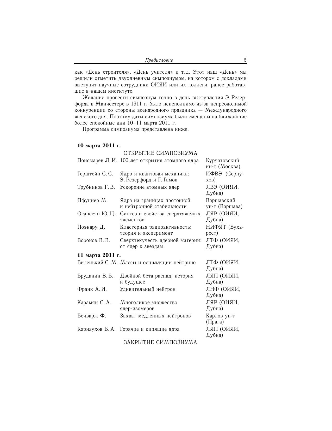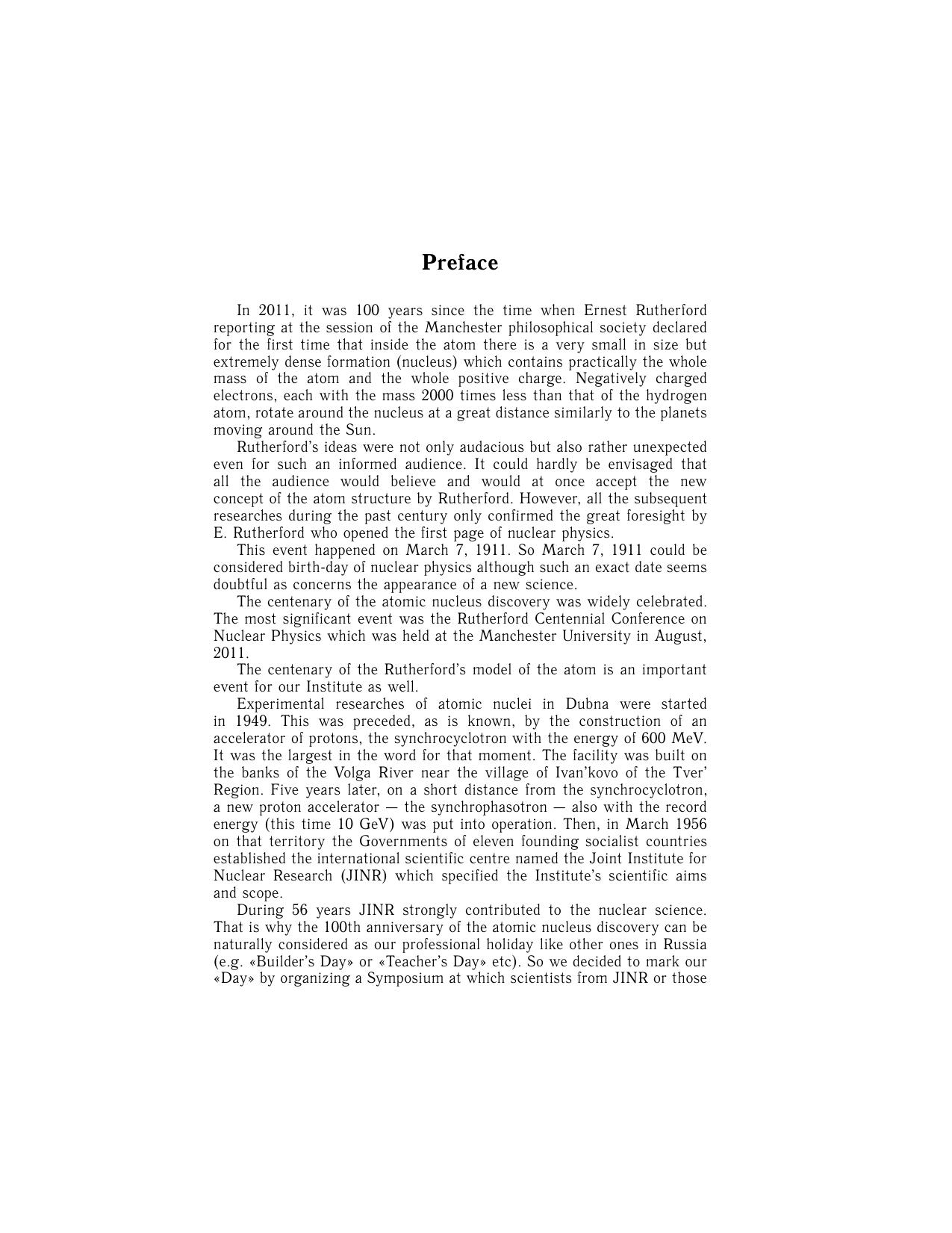 ОИЯИ и столетие открытия атомного ядра. Труды симпозиума. ОИЯИ, Дубна, Россия, 11–12 марта 2011 года