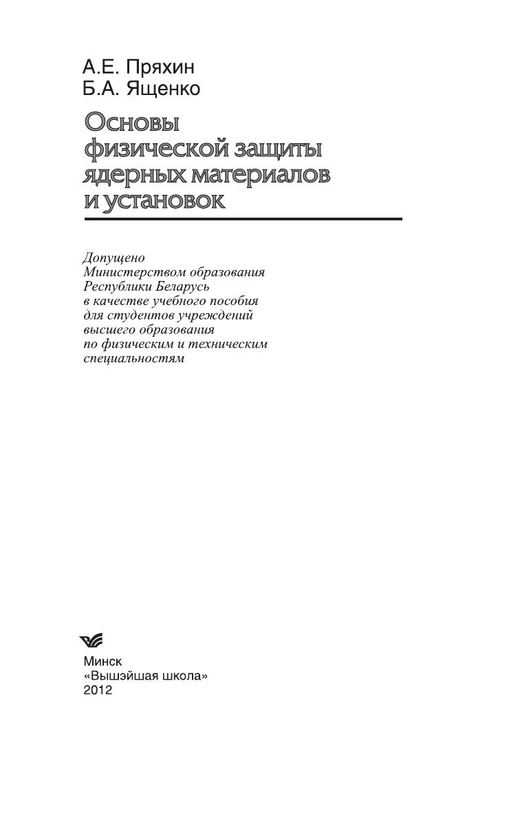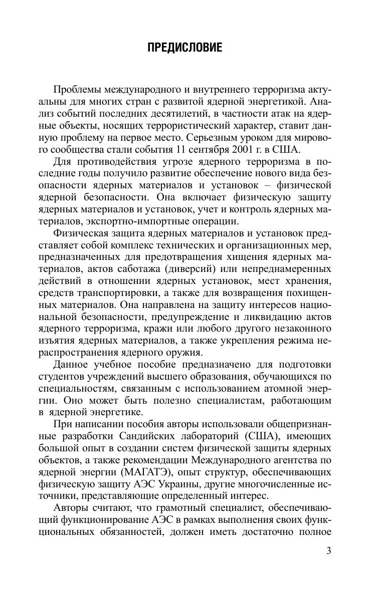 Рассмотрены законодательная, инженерно-техническая и организационная составляющие системы физической защиты ядерных объектов. Изложены методологические основы построения системы физической защиты, ее проектирования и функционирования, решаемые задачи и технические методы их реализации, основные функции системы физической защиты, средства обнаружения, задержки и нейтрализации нарушителей, организация физической защиты на ядерном предприятии, роль и место персонала при организации физической защиты, вопросы защиты от диверсий, хищений ядерного материала при его использовании, хранении и транспортировке.