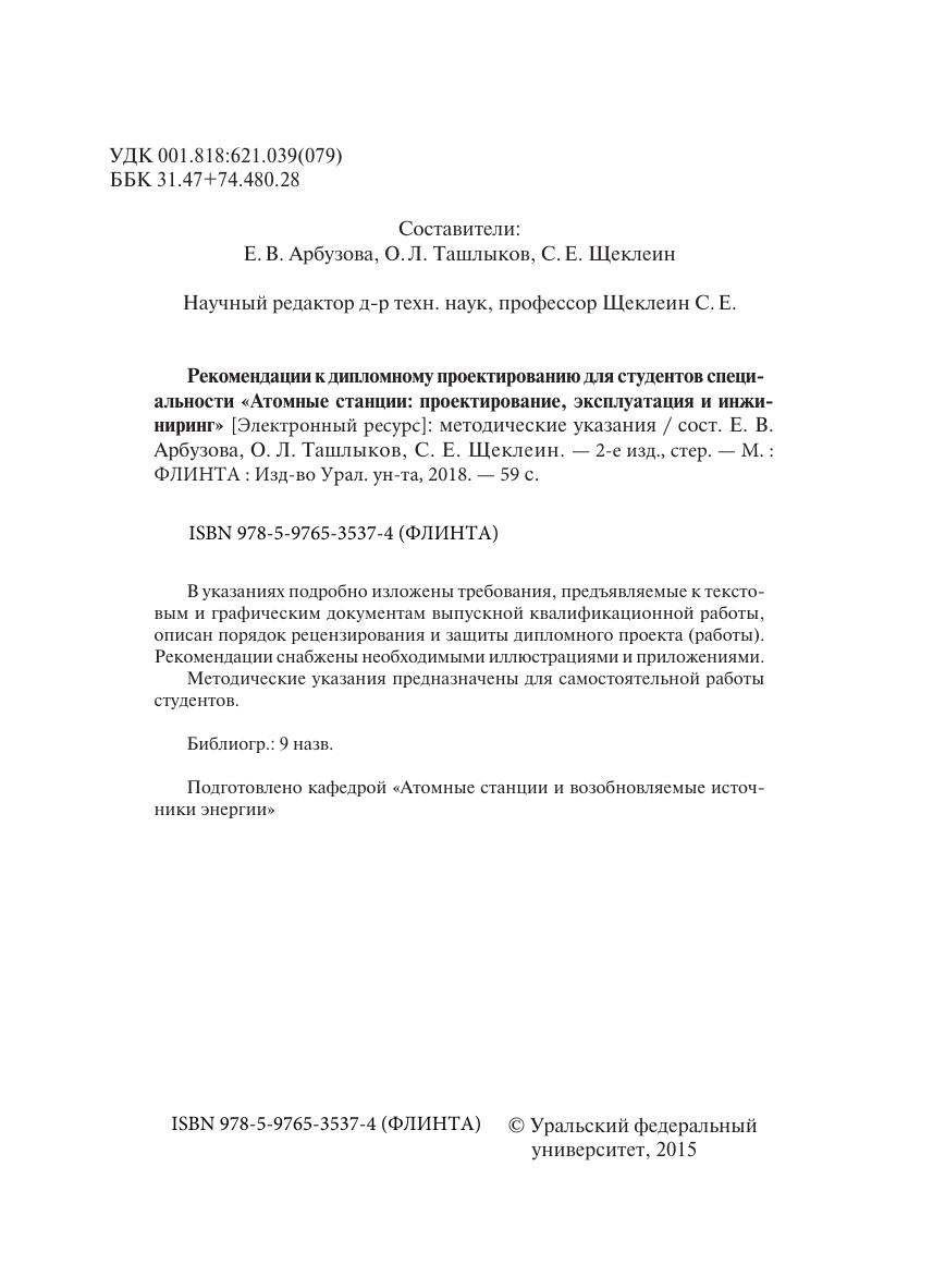 Рекомендации к дипломному проектированию для студентов специальности «Атомные станции: проектирование, эксплуатация и инжиниринг»