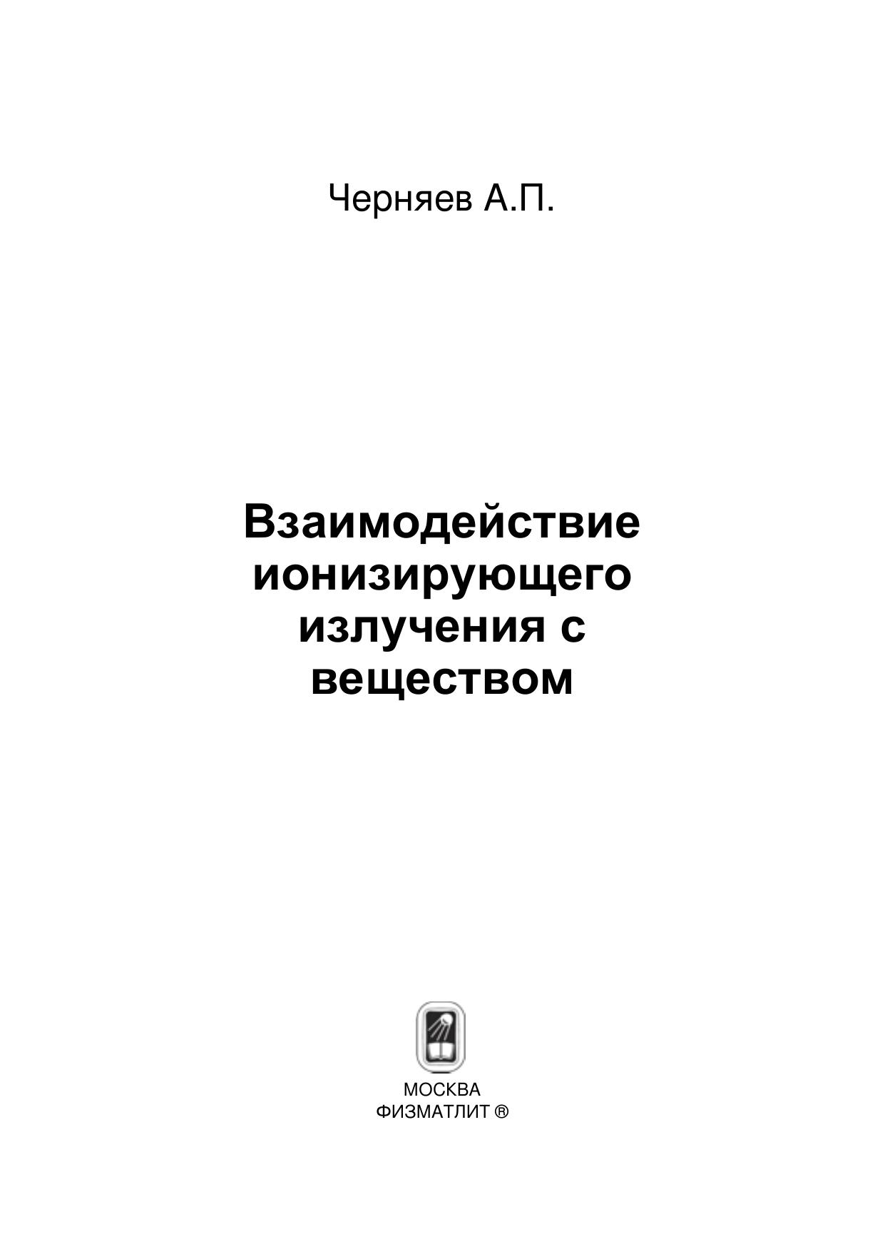 Учебное пособие соответствует курсу «Взаимодействие ионизирующего излучения с веществом». Оно может быть полезно студентам физических специальностей вузов студентам, специализирующимся по использованию ионизирующих излучений в медицине студентам радиобиологам и радиологам, а также преподавателям настоящего курса и специалистам