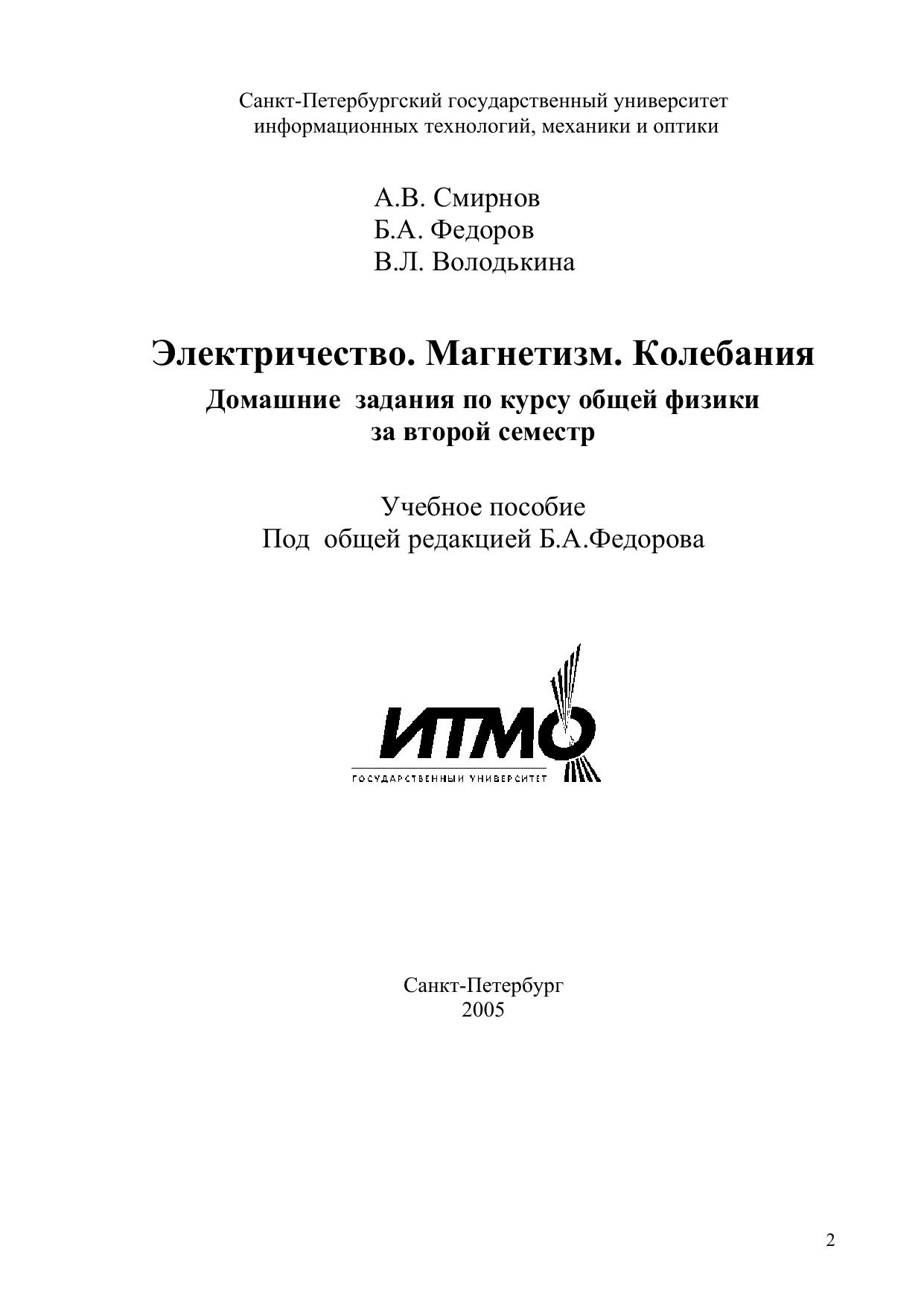 Электричество. Магнетизм. Колебания. Домашние задания по курсу общей физики за второй семестр