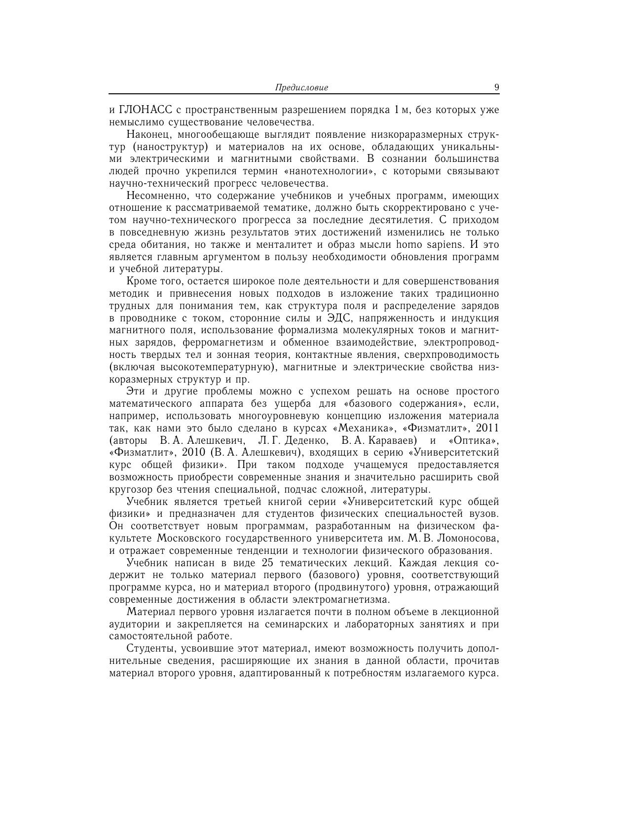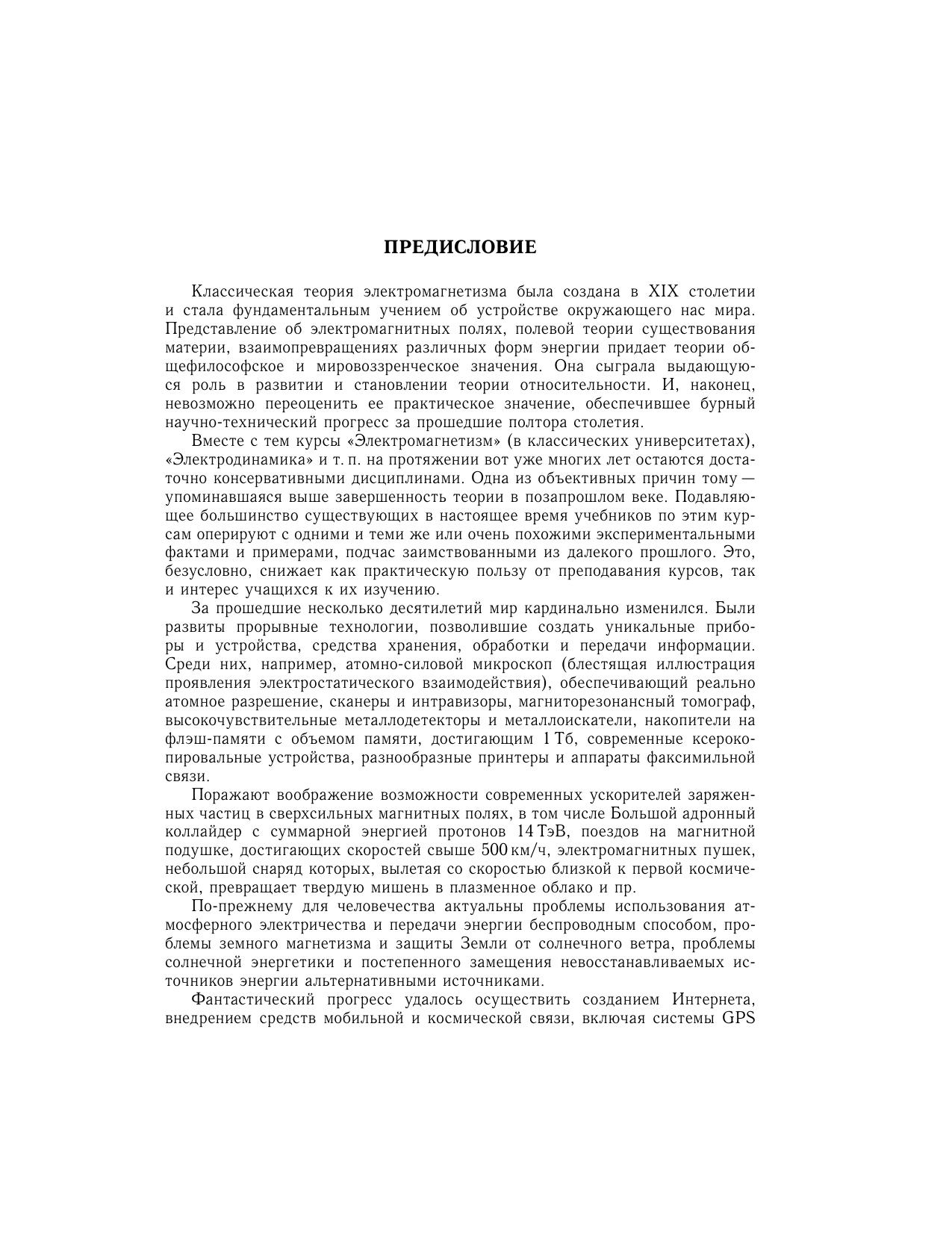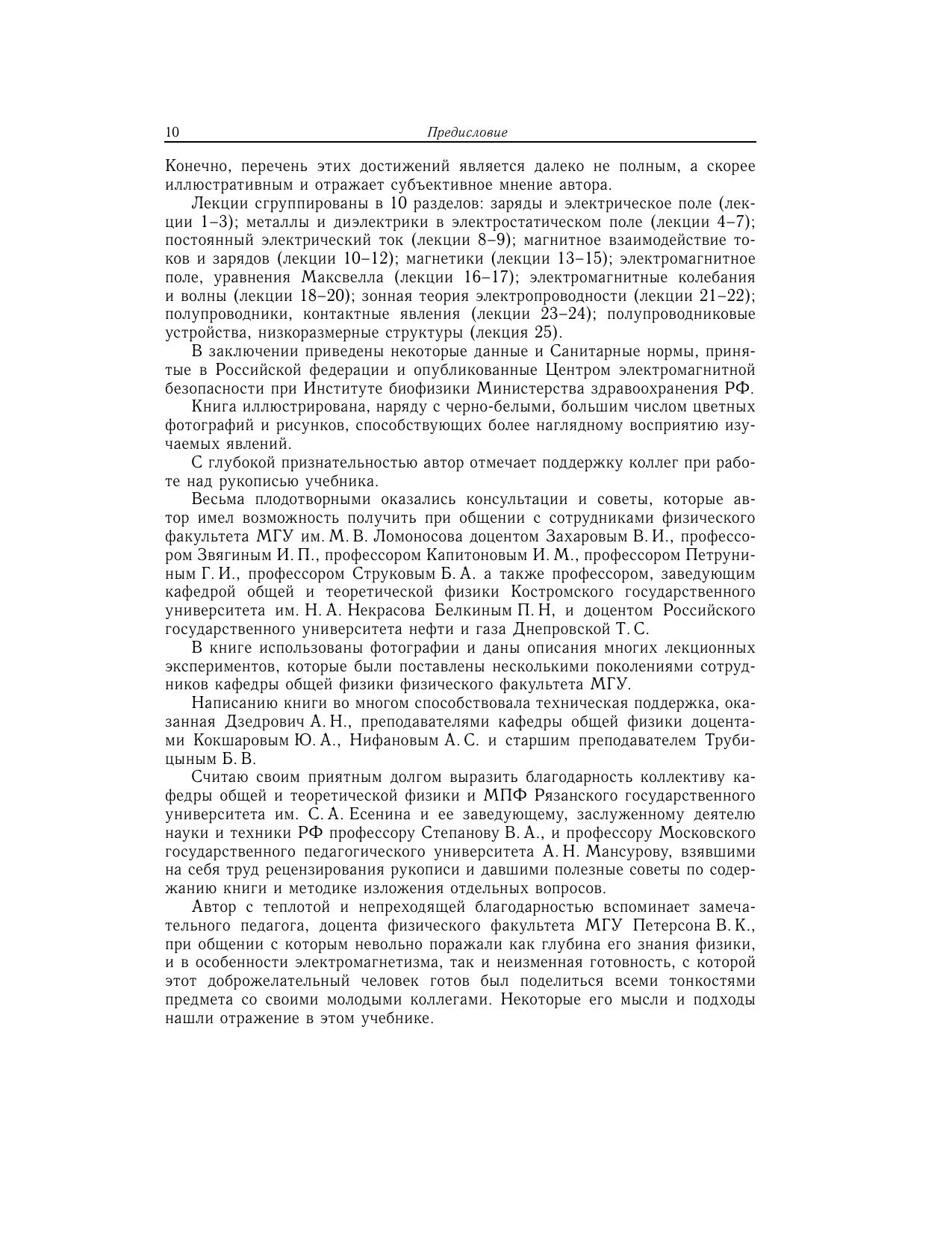 Учебник является третьим учебником серии «Университетский курс общей физики» и предназначен студентам физических специальностей вузов. Главная особенность учебника — многоуровневая концепция изложения важнейших экспериментальных фактов и основ теории физических явлений с учетом современных научных достижений. Книга включает следующие основные разделы: заряды и электрическое поле, металлы и диэлектрики в электростатическом поле, постоянный электрический ток, магнитное взаимодействие токов и зарядов, магнетики, электромагнитное поле и уравнения Максвелла, электромагнитные колебания и волны, зонная теория электропроводности, полупроводники, контактные явления, полупроводниковые устройства, низкоразмерные структуры. В заключении приведены санитарные нормы электромагнитной безопасности Минздрава Российской Федерации. Для студентов высших учебных заведений, обучающихся по специальности «Физика».
