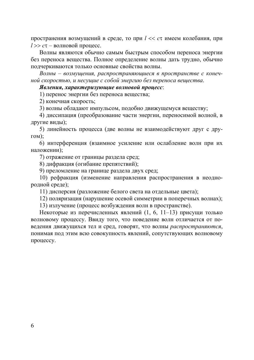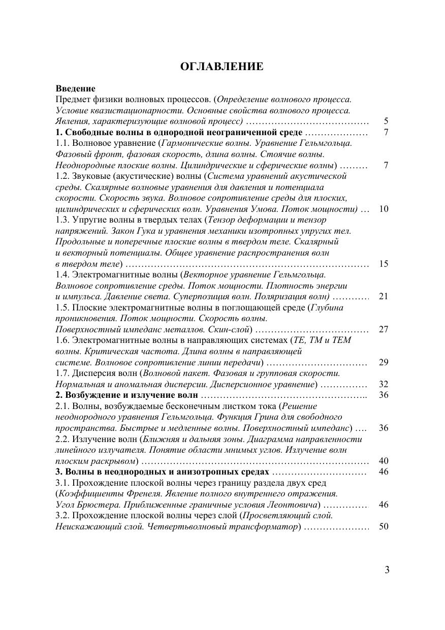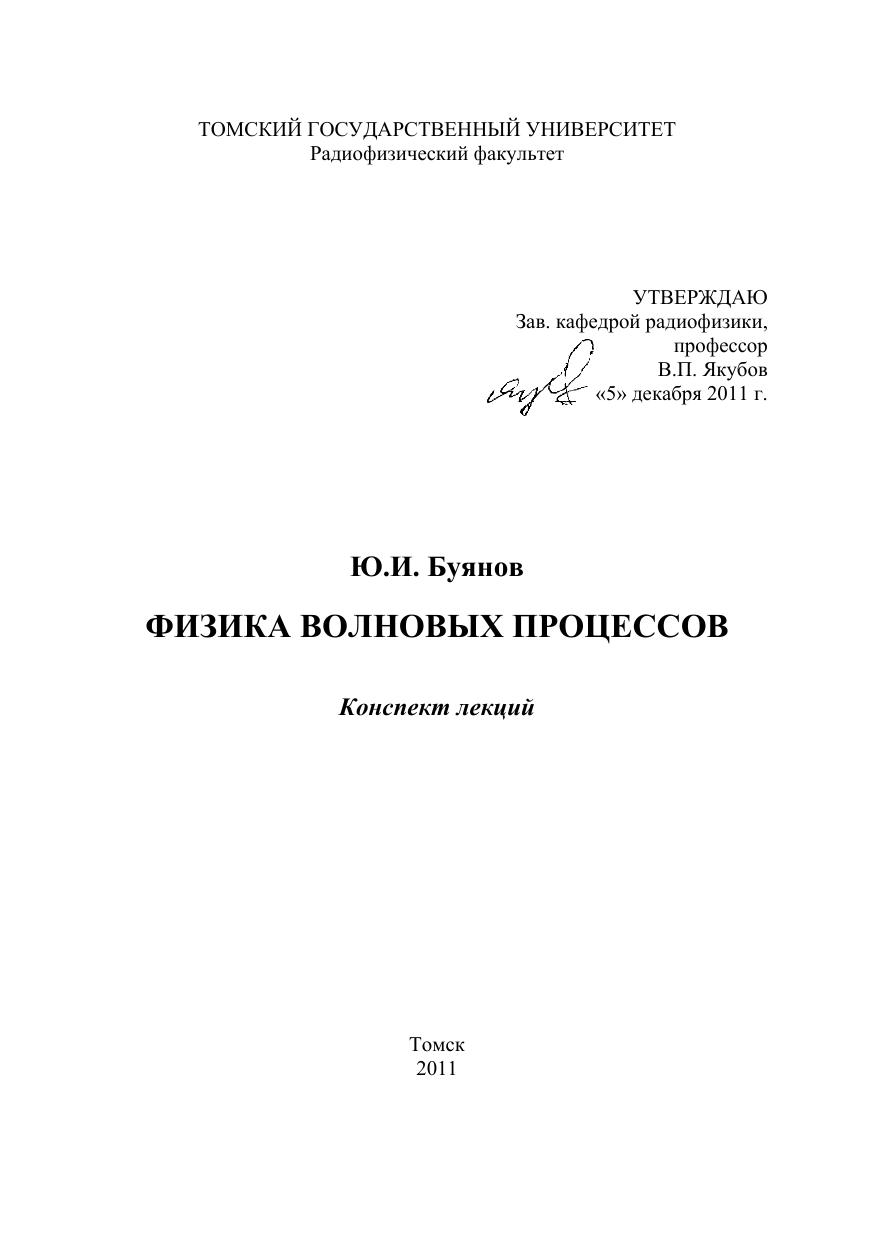 Работа содержит конспективное изложение лекционного курса «Физика волновых процессов». Целью курса является изучение основных понятий и закономерностей распространения волн различной физической природы в средах с различными свойствами. Математической основой курса являются разделы курса высшей математики: математический анализ, аналитическая геометрия, дифференциальные уравнения, теория функций комплексной переменной и методы математической физики. Курс лекций предназначен для подготовки бакалавров и магистров по специальности «радиофизика и электроника» и содержит три раздела: свободные волны в однородной неограниченной среде, возбуждение и излучение волн, волны в неоднородных и анизотропных средах. В работе приводится рабочая программа курса «Физика волновых процессов» по направлению 511500 (радиофизика). Для углубленного изучения материала в пособие включены задачи и контрольные вопросы для самопроверки.
