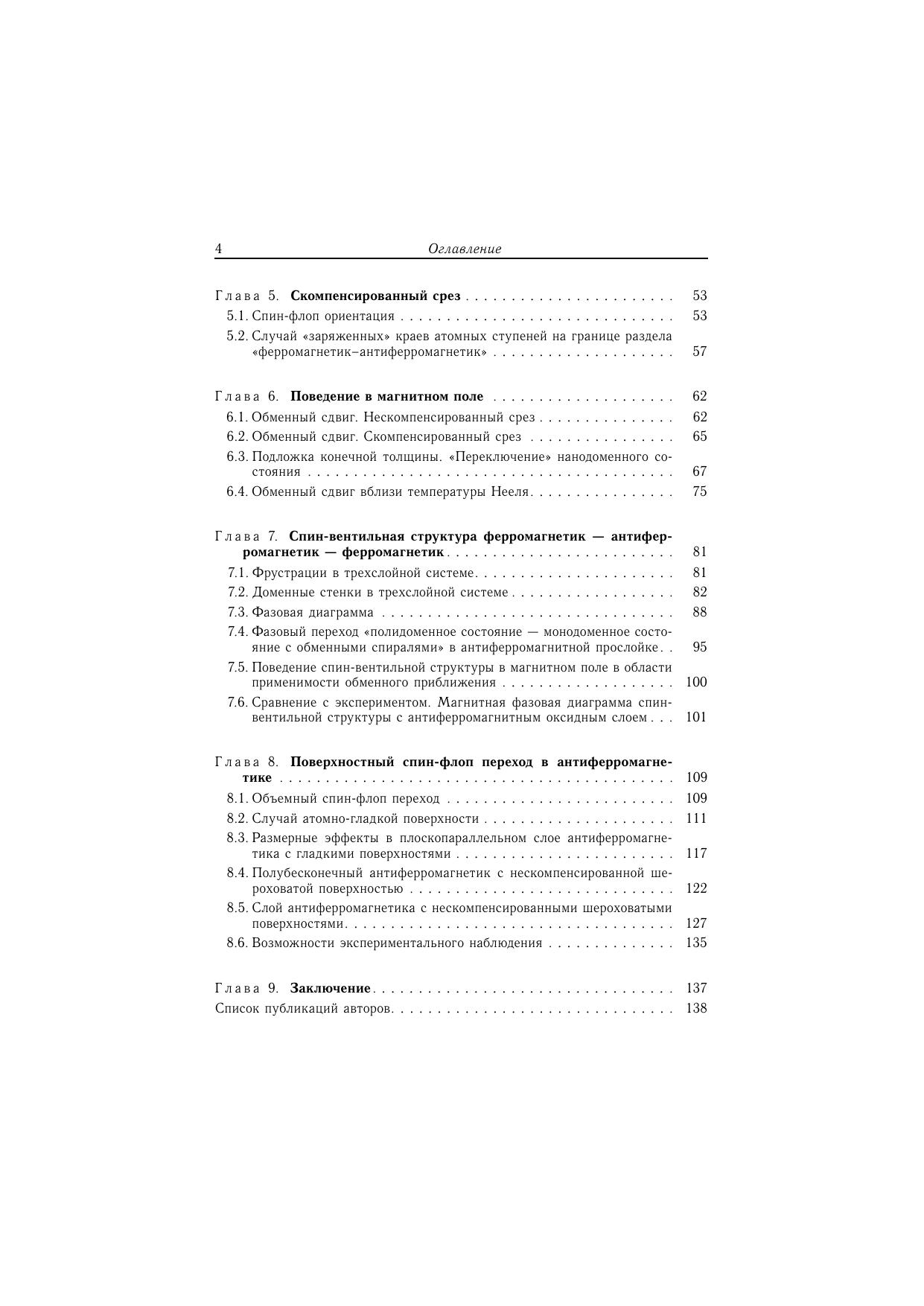 ферромагнетика на антиферромагнитной подложке и спин-вентильной системы ферромагнетик–антиферромагнетик–ферромагнетик с учетом энергии одноионной анизотропии. Обнаружено, что благоприятным для появления обменного сдвига в системе ферромагнетик–антиферромагнетик является наличие взаимно-перпендикулярных легких осей, лежащих в плоскости слоев. Кроме этого, либо должно существовать связанное состояние доменной стенки на границе раздела, либо должен иметь место пиннинг доменной стенки дефектами кристаллической решетки в антиферромагнетике вблизи границы с ферромагнетиком. Для научных работников и специалистов в области магнитоэлектроники и магнитных наноструктур.