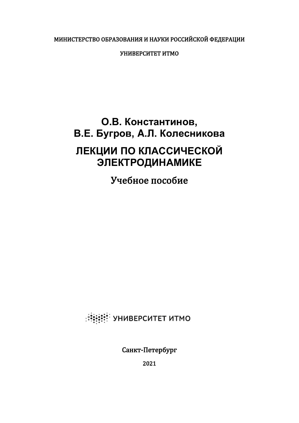 Авторы: Константинов О. В., Бугров В. Е., Колесникова А. Л.