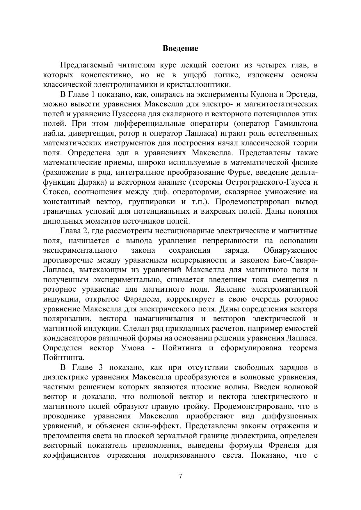 Учебное пособие предназначено для студентов, обучающимся по направлению подготовки 16.04.01 «Техническая физика», для закрепления и применения знаний, полученных на лекциях, практических занятиях и во время самостоятельной работы. Также данное учебное пособие адресовано студентам старших курсов и аспирантам, специализирующимся в физико-технических науках. В учебном пособии даются основы классической электродинамики и включена глава, посвященная прохождению световых лучей через анизотропные среды - кристаллооптике.
