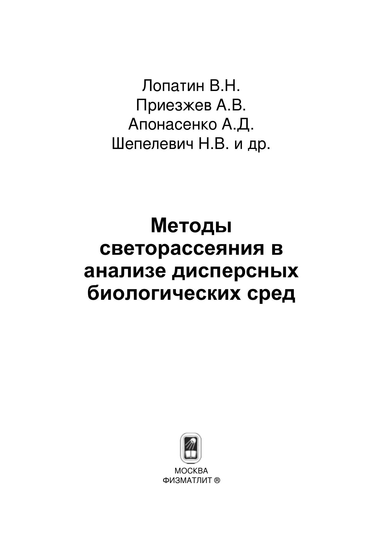 Методы светорассеяния в анализе дисперсных биологических сред