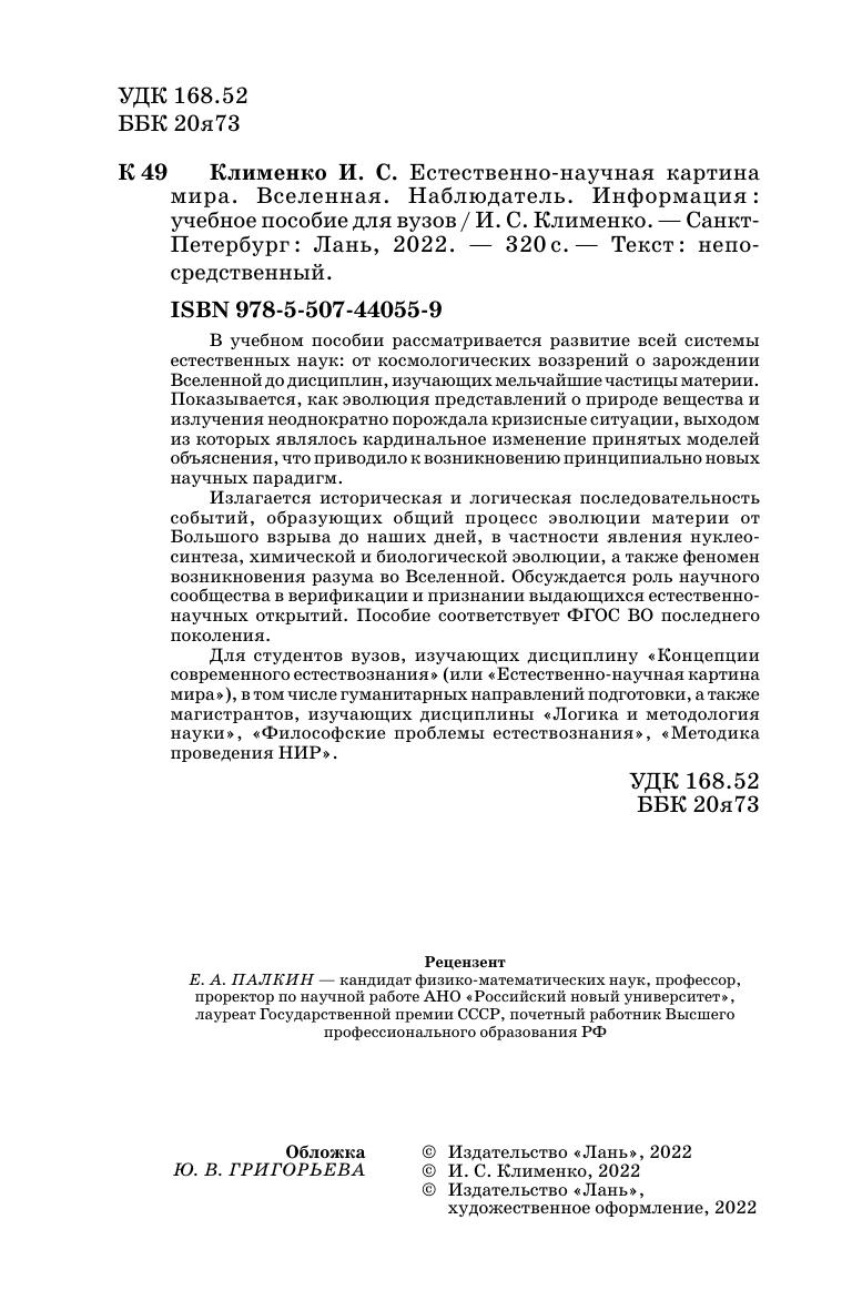 Естественно-научная картина мира. Вселенная. Наблюдатель. Информация