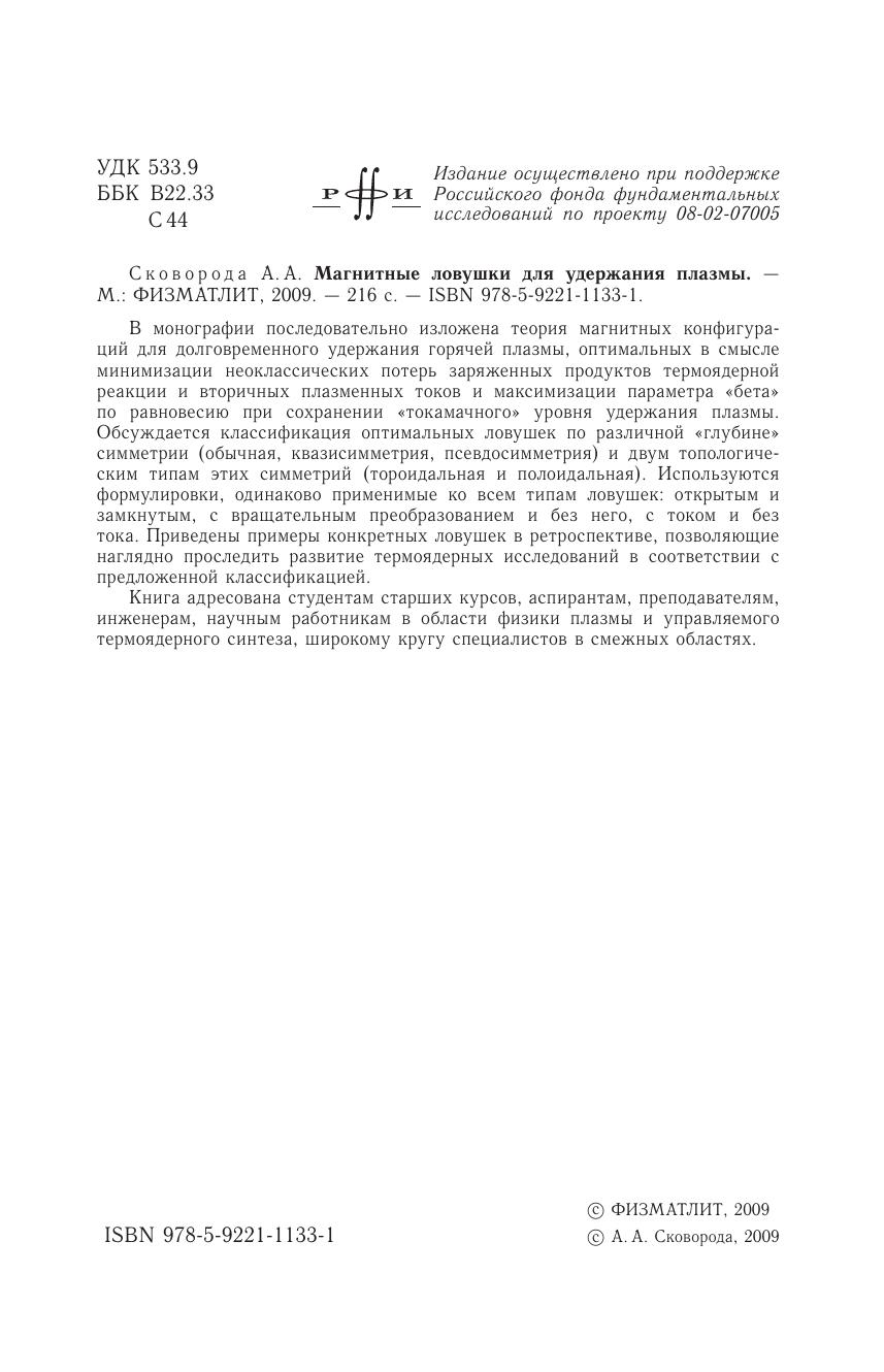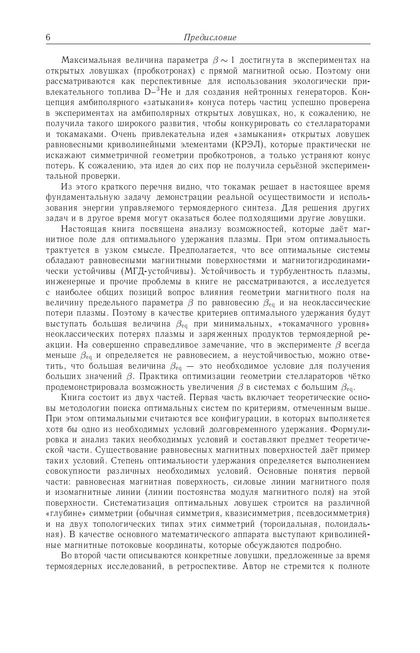 В монографии последовательно изложена теория магнитных конфигураций для долговременного удержания горячей плазмы, оптимальных в смысле минимизации неоклассических потерь заряженных продуктов термоядерной реакции и вторичных плазменных токов и максимизации параметра «бета» по равновесию при сохранении «токамачного» уровня удержания плазмы. Обсуждается классификация оптимальных ловушек по различной «глубине» симметрии (обычная, квазисимметрия, псевдосимметрия) и двум топологическим типам этих симметрий (тороидальная и полоидальная). Используются формулировки, одинаково применимые ко всем типам ловушек: открытым и замкнутым, с вращательным преобразованием и без него, с током и без тока. Приведены примеры конкретных ловушек в ретроспективе, позволяющие наглядно проследить развитие термоядерных исследований в соответствии с предложенной классификацией.Книга адресована студентам старших курсов, аспирантам, преподавателям, инженерам, научным работникам в области физики плазмы и управляемого термоядерного синтеза, широкому кругу специалистов в смежных областях.
