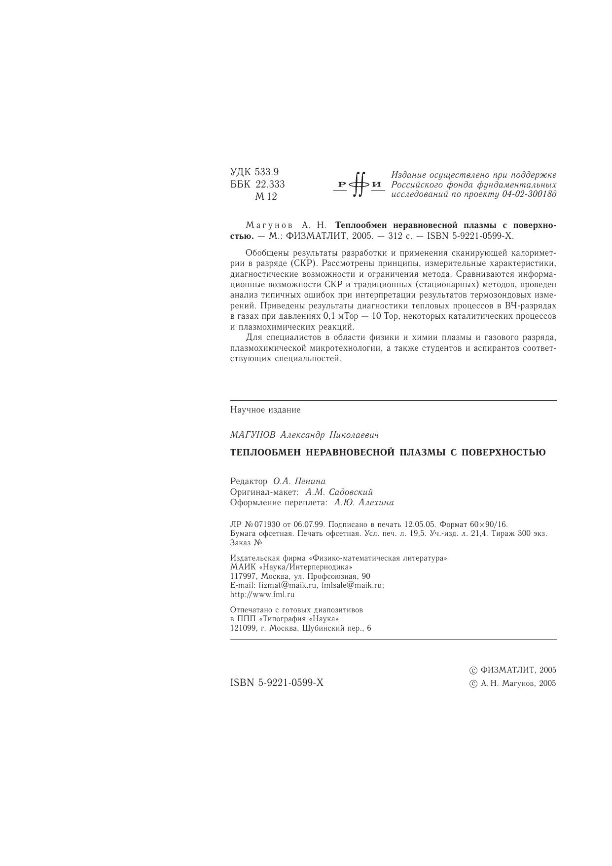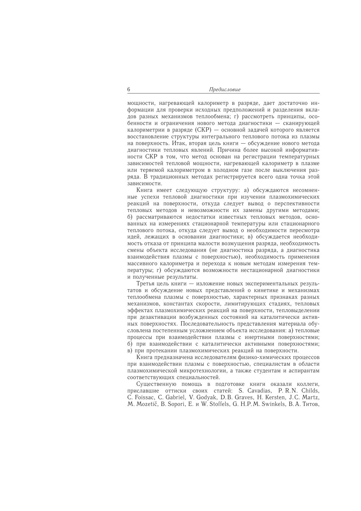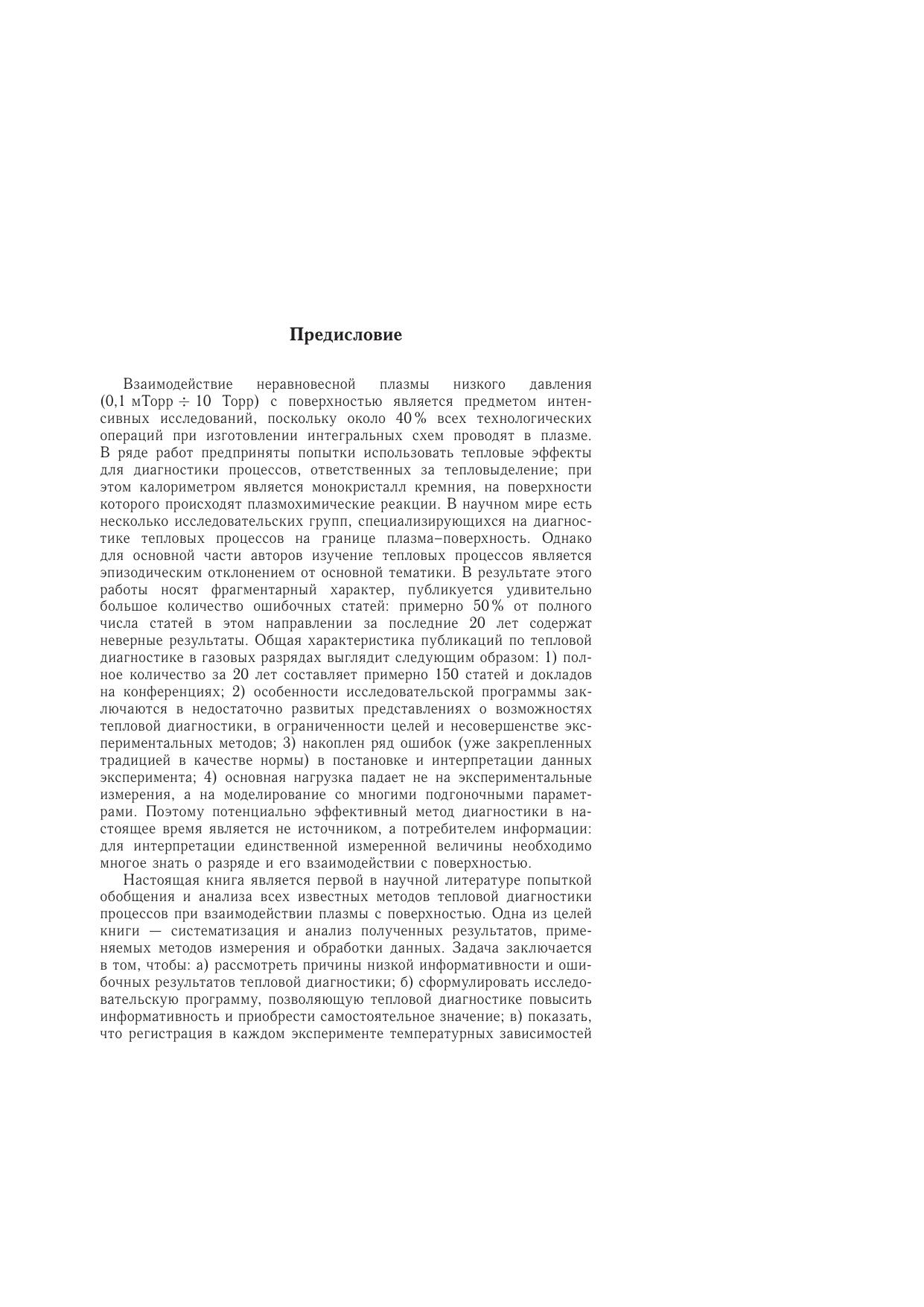 Обобщены результаты разработки и применения сканирующей калориметрии в разряде (СКР). Рассмотрены принципы, измерительные характеристики, диагностические возможности и ограничения метода. Сравниваются информационные возможности СКР и традиционных (стационарных) методов, проведен анализ типичных ошибок при интерпретации результатов термозондовых измерений. Приведены результаты диагностики тепловых процессов в ВЧ-разрядах в газах при давлениях 0,1 мТор — 10 Тор, некоторых каталитических процессов и плазмохимических реакций. Для специалистов в области физики и химии плазмы и газового разряда, плазмохимической микротехнологии, а также студентов и аспирантов соответствующих специальностей.