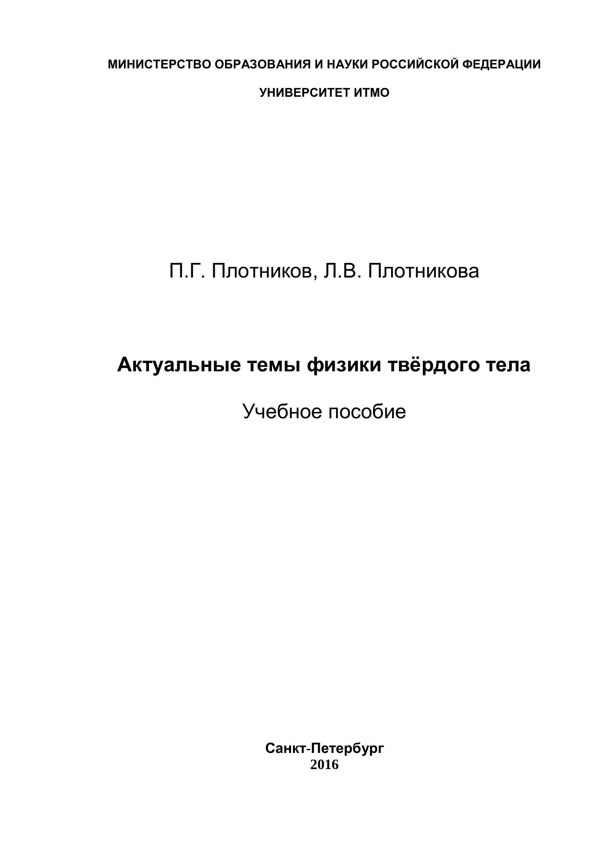 Актуальные темы физики твѐрдого тела: Учебное пособие