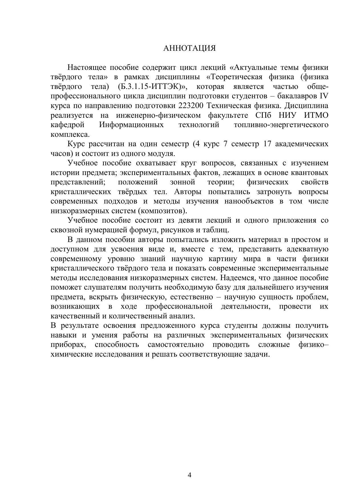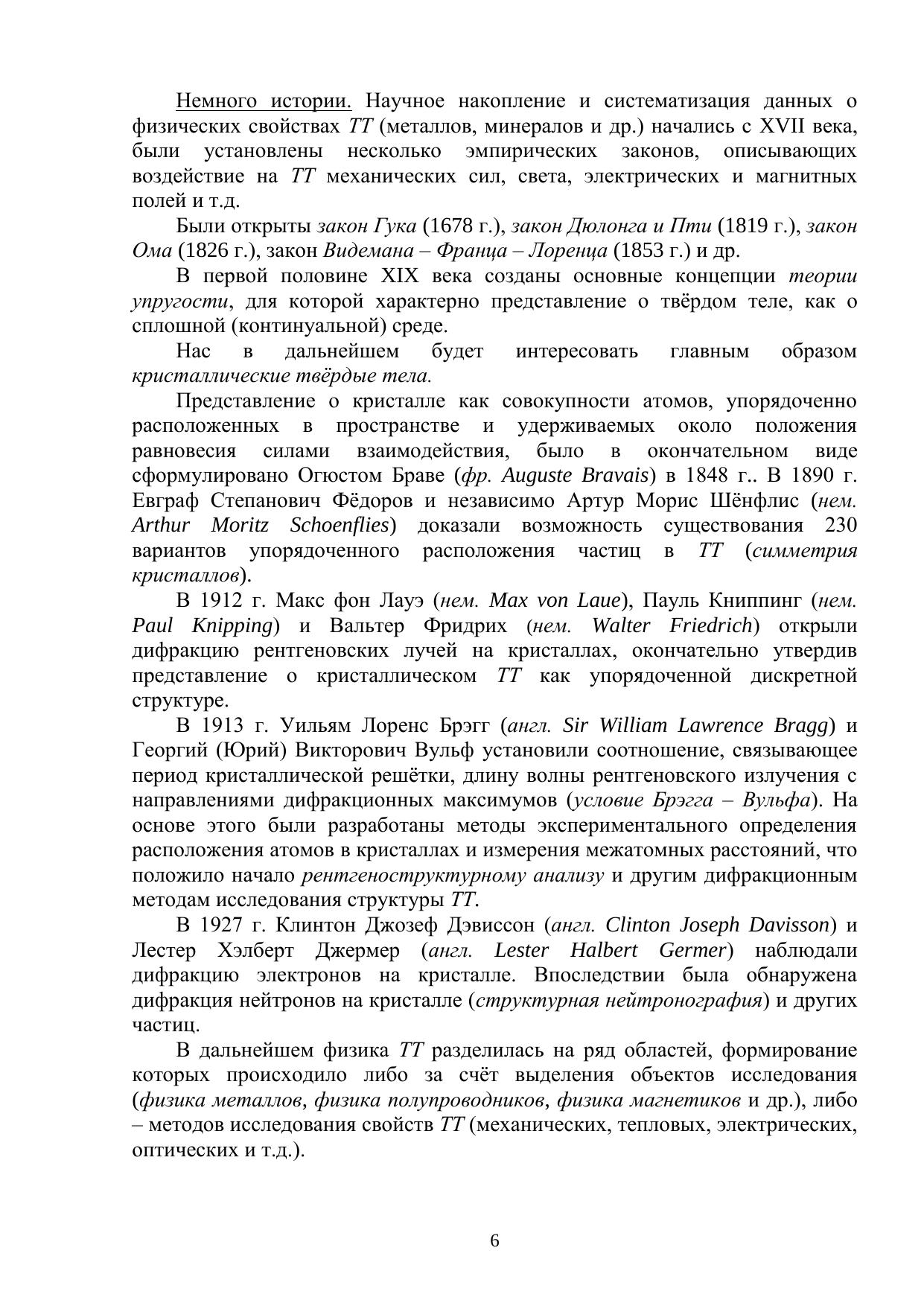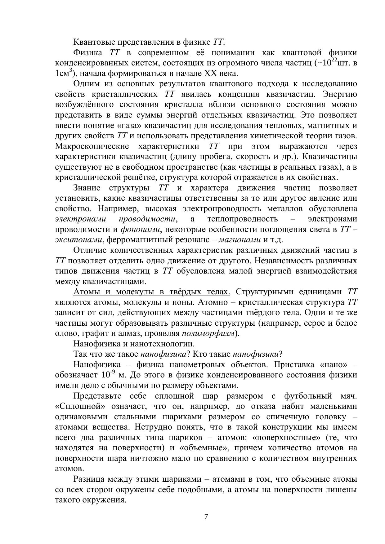 В учебном пособии представлен цикл лекций для изложения основных положений физики твѐрдого тела: истории; экспериментальных фактов, лежащих в основе квантовых представлений; электрических и магнитных свойств кристаллических твѐрдых тел; затронуты темы «нано–», поверхностей и фазовых переходов в твѐрдых телах; рассматриваются экспериментальные методы исследования поверхностей.