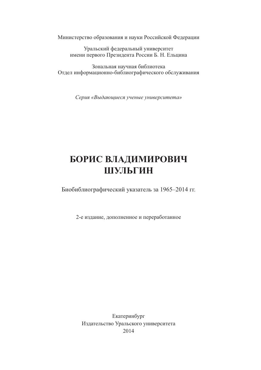 Борис Владимирович Шульгин : биобиблиогр. указ, за 1965— 2014 гг.