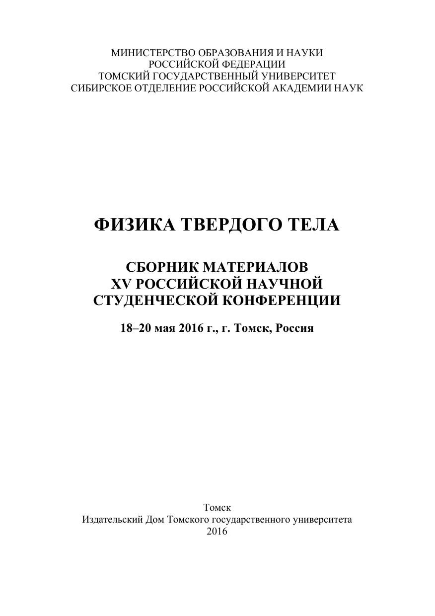 Физика твердого тела: сборник материалов XV Российской научной студенческой конференции (18–20 мая 2016 г., г. Томск, Россия)