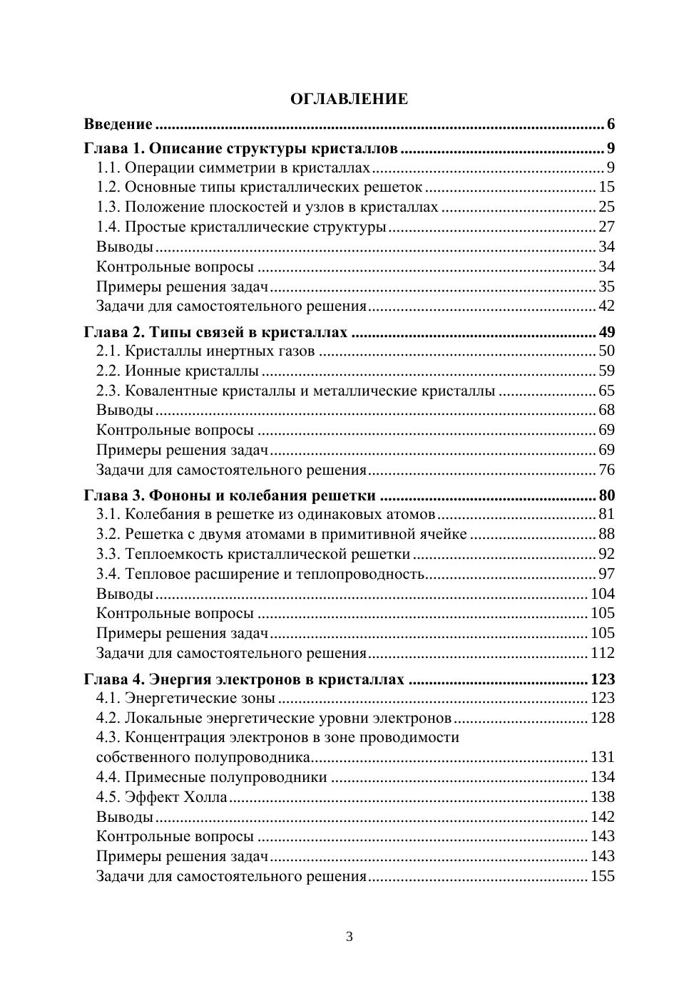 Рассмотрена структура кристаллов, зонная энергетическая структура полупроводников. Наглядно представлены типы связей в кристаллах, колебания решетки и модели описания теплоемкости полупроводников и металлов. Приведены свойства диэлектриков, динамические свойства и рассмотрены сегнетоэлектрические кристаллы. В общих чертах излагается теория Ферми газа и даются основные экспериментальные факты по сверхпроводимости и применение сверхпроводников. Рассматриваются полупроводники с собственной и примесной проводимостью, магнитные свойства. Приведены примеры решения задач, задачи для самостоятельного решения и виртуальные лабораторные работы. Весь курс физики можно разбить на три модуля.