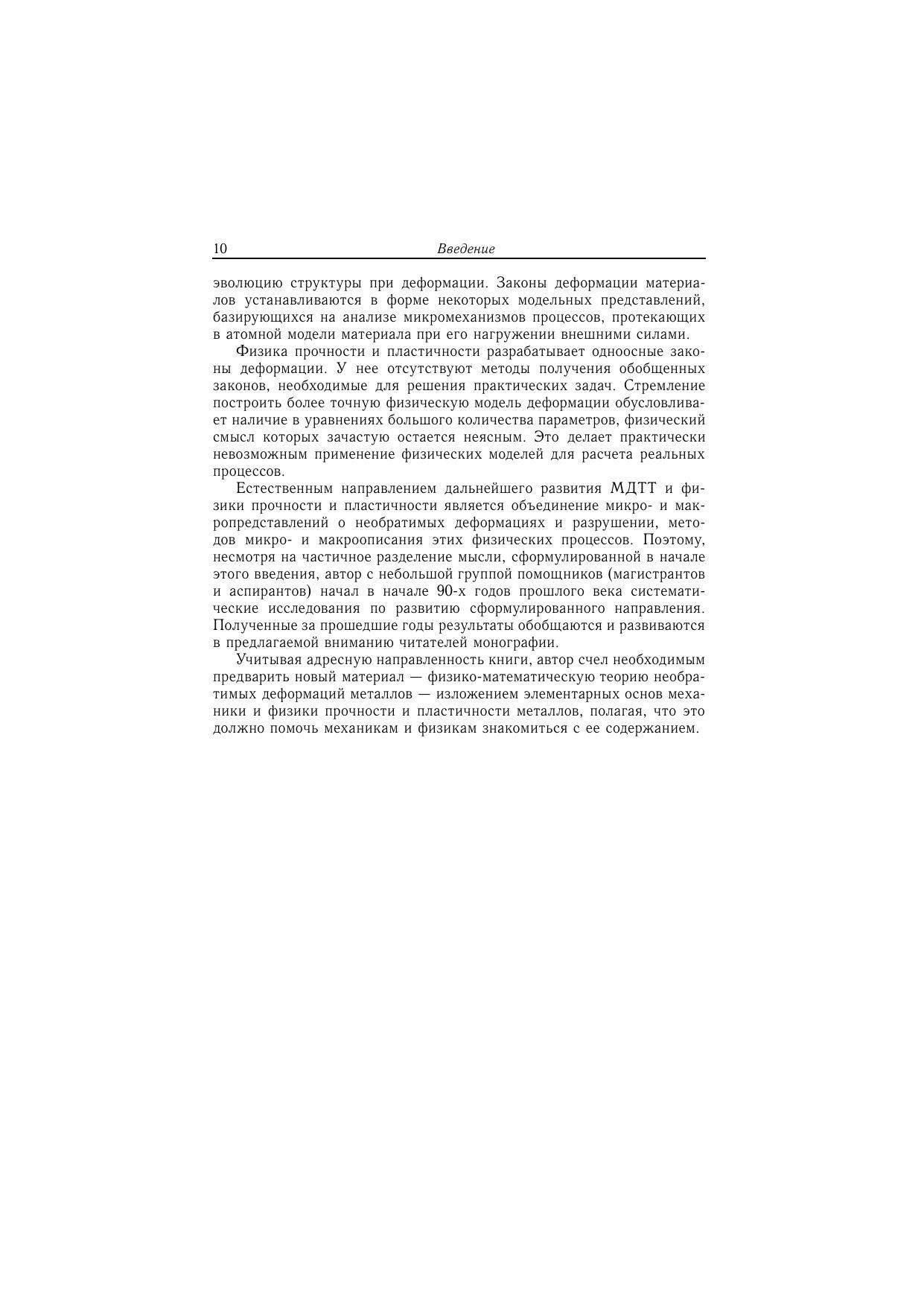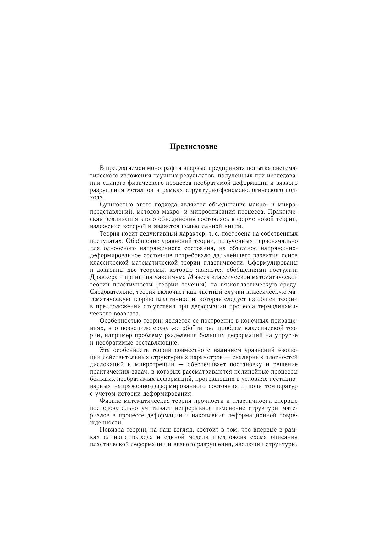 Излагается новая физико-математическая теория необратимых деформаций и вязкого разрушения металлов, учитывающая эволюцию структуры и историю нагружения, а также включающая в качестве частного случая классическую математическую теорию пластичности (теорию течения). Монография адресована специалистам в области механики необратимых деформаций, физики прочности и пластичности. Может быть полезна магистрантам и аспирантам, специализирующимся в этих областях науки.