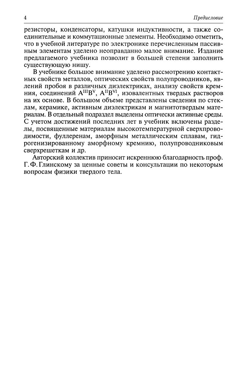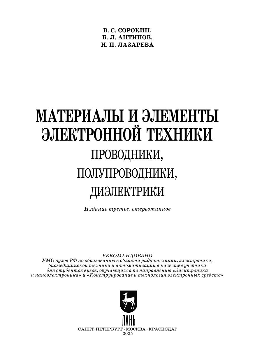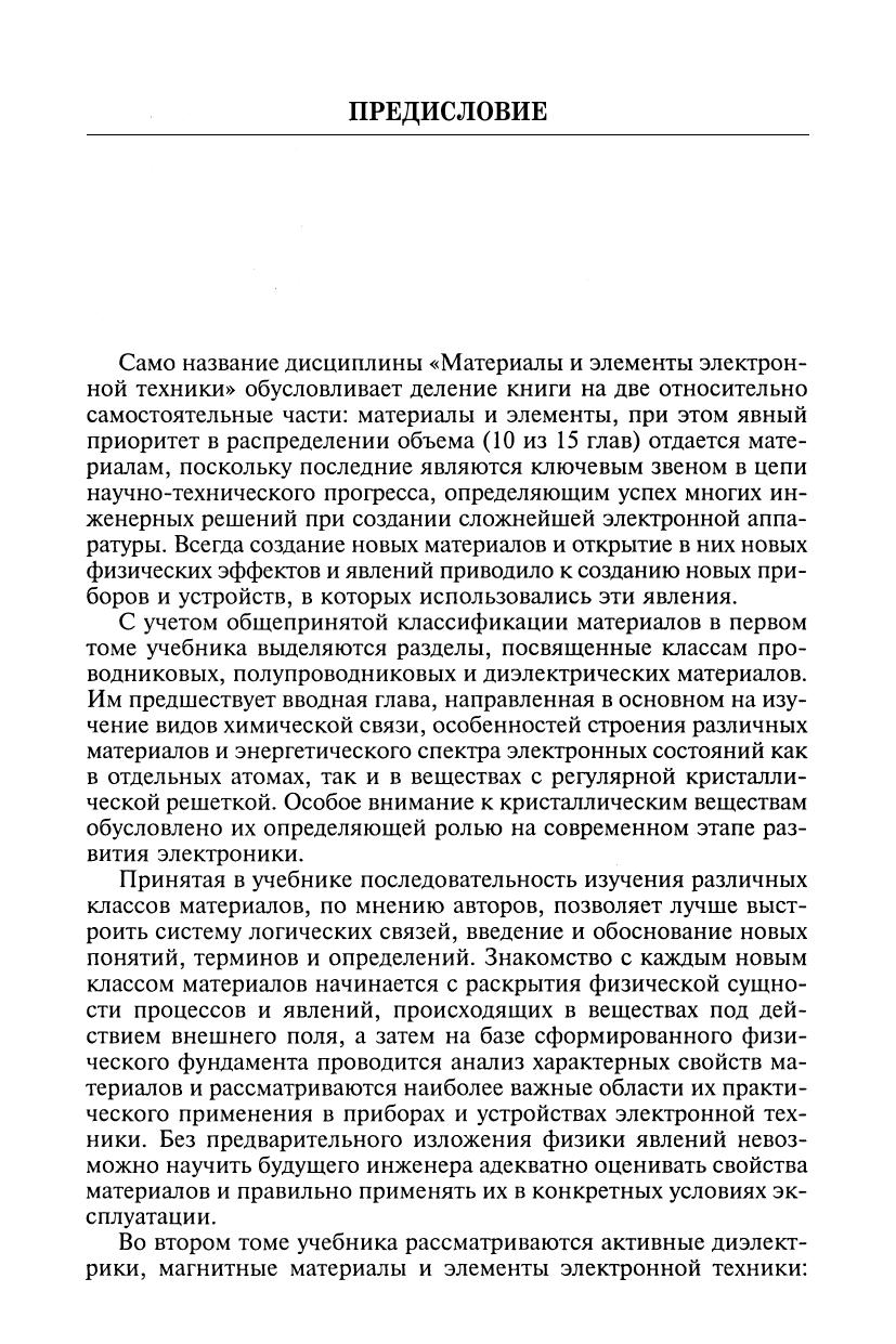 Рассмотрены физические процессы и явления, протекающие в проводниках, полупроводниках и диэлектриках. Выявлены основные закономерности изменения свойств в зависимости от состава веществ и внешних возмущающих факторов. Проведен анализ электрических и магнитных свойств материалов в тесной взаимосвязи с их внутренним строением и практическим применением в приборах и устройствах электронной техники. Значительное внимание уделено новым материалам электроники: высокотемпературным сверхпроводникам, полупроводниковым твердым растворам и сверхрешеткам на их основе, фуллеренам и углеродным нанотрубкам, аморфным полупроводниковым материалам и металлическим сплавам. Для студентов вузов, обучающихся по направлениям "Электроника и наноэлектроника" и "Конструирование и технология электронных средств".