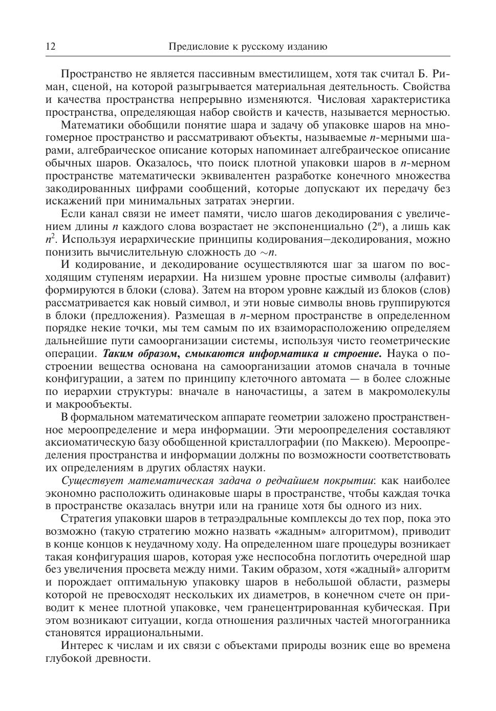 Последние достижения в науке привели к созданию новых материалов с уникальными свойствами, главным образом вследствие целенаправленных изменений структуры на атомном уровне. Для описания состояния и формы материи на этом уровне требуются разнообразные математические понятия. Эта книга дает представление о геометрических идеях, которые развиваются и внедряются в науку о материалах с целью обеспечения визуализации и полного описания упорядочения атомов в трехмерном пространстве. Особое значение придается интуитивному пониманию принципов геометрии, представленных посредством многочисленных иллюстраций. Сложность математических выкладок сведена к минимуму, и для понимания требуются только начальные сведения о векторах и матрицах, что обеспечивает доступное введение в рассматриваемую область знаний. Эта книга, содержащая еще и подробный список литературы, адресована тем, кто работает в области кристаллографии, физики твердого тела или науки о материалах: иследователям, инженерам, а также аспирантам и студентам старших курсов.