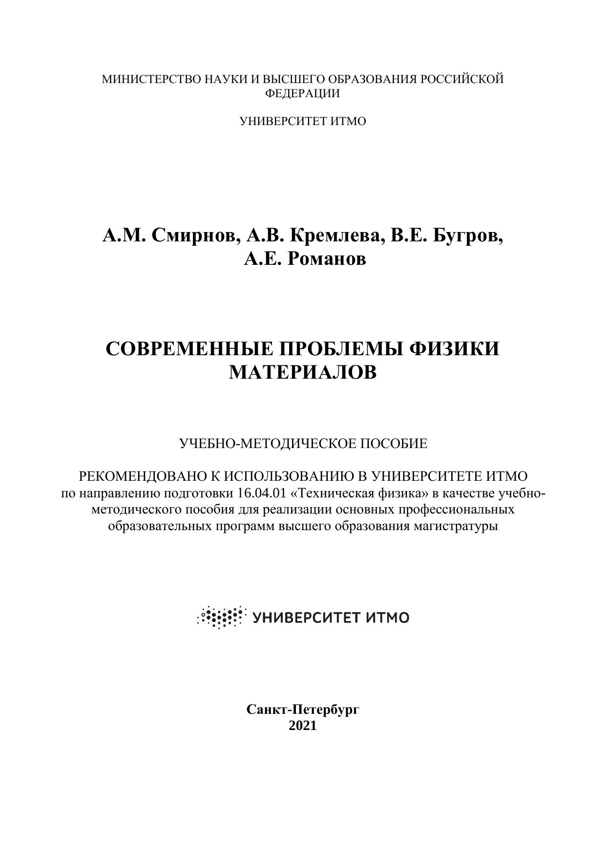 Авторы: Смирнов А. М., Кремлева А. В., Бугров В. Е., Романов А. Е.